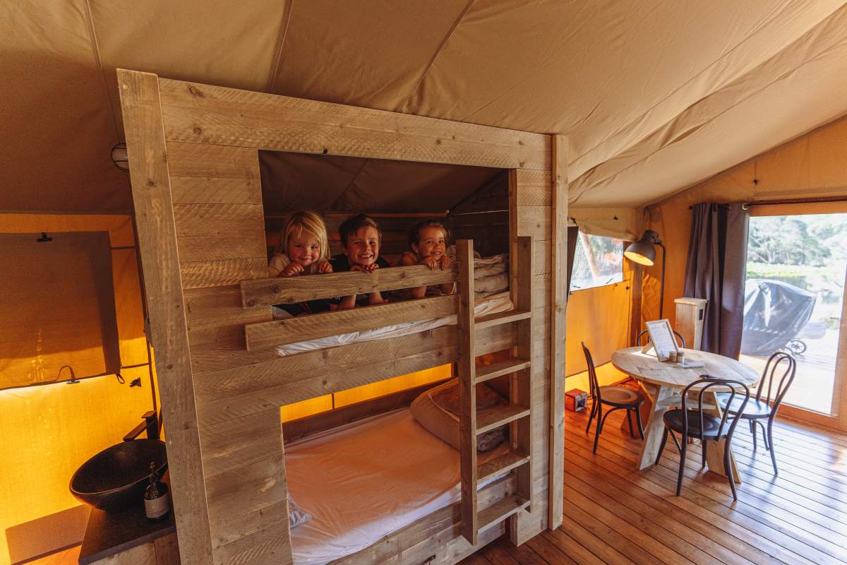 Australian Standards maintain that children need to be nine years old or above to sleep on the top bunk and even though it’s fun, they aren’t allowed to play on the top bunk either. Please make your booking with this in mind.