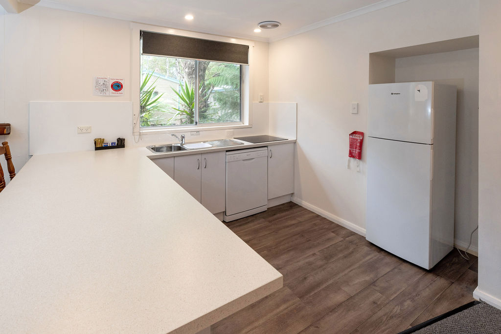 Two bedroom Cottage for 6 people with one queen bed and two singles plus a double fold out lounge. Full kitchen with open lounge room.