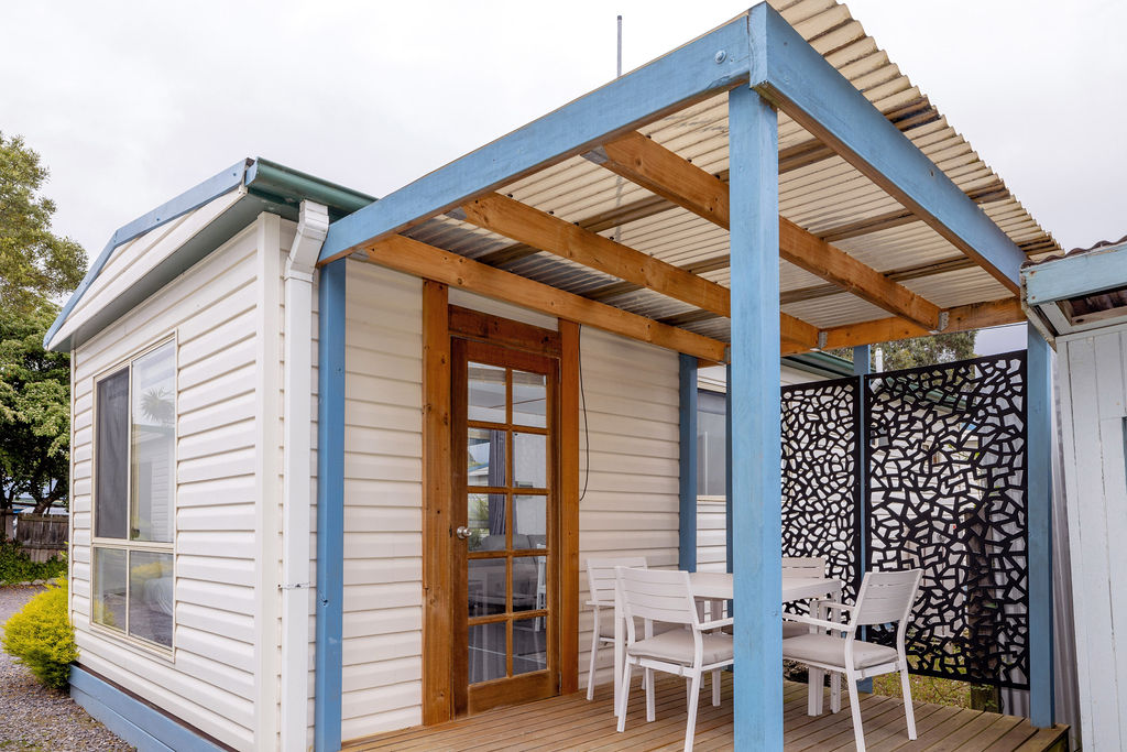 This Classic Park Cabin sleeps 6 with two separate sleeping areas.These classic cabins are a cosy for 6 people, but all have large decks with outside furniture and are well maintained in a lovely setting. They have well equipped kitchens, TV and Wi-Fi. The bathroom is accessed through the bunk room.