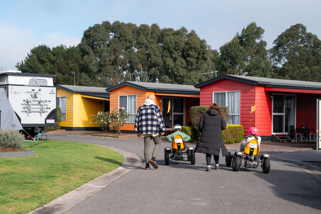 Situated in the heart of Gippsland, BIG4 Traralgon Park Lane Holiday Park is a popular destination for those seeking a holiday experience like no other. Challenge yourself on a 3-level adventure ropes course, have a round of mini-golf with 18 holes to complete surrounded by dinosaurs and a few familiar characters. Rainy days are no worries with our indoor play centre and function room. Our pet friendly Traralgon caravan park offers a wide range of accommodation styles from camp sites to cabins, making BIG4 Traralgon Park Lane the perfect place to stay and play! Nearby, take to the skies like never before with Bandicoot Adventure Flights just 1km away, or take a drive out to Wirilda Environment Park and Peterson's Lookout to get an incredible view of the area. Then immerse yourself in nature at Morwell National Park.