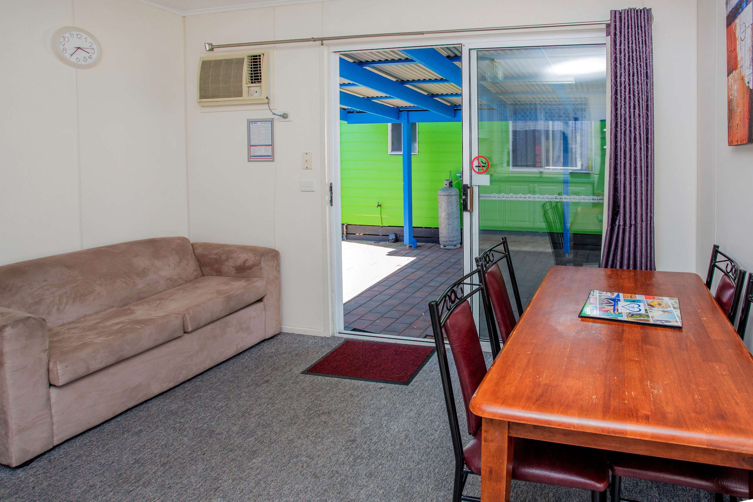 Ideal for travelling with your family, these cabins provide private living and sleeping areas. With either a queen or double bed in the main bedroom, and a double bed with optional wall bunk or single bunks in the second bedroom. A full kitchen, outdoor setting and bathroom give you a home away from home feeling. Your furry friends are welcome to join you in this accommodation.