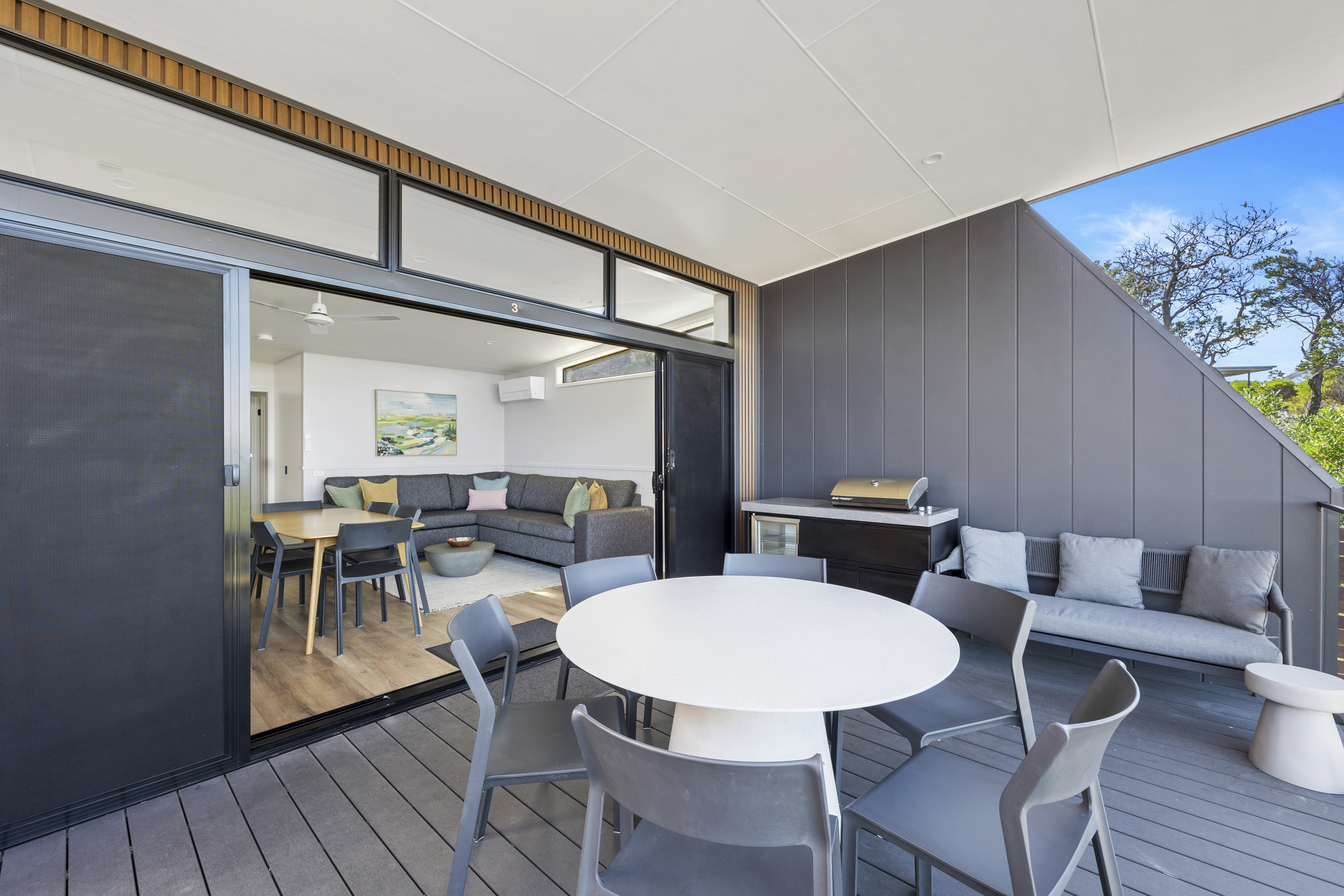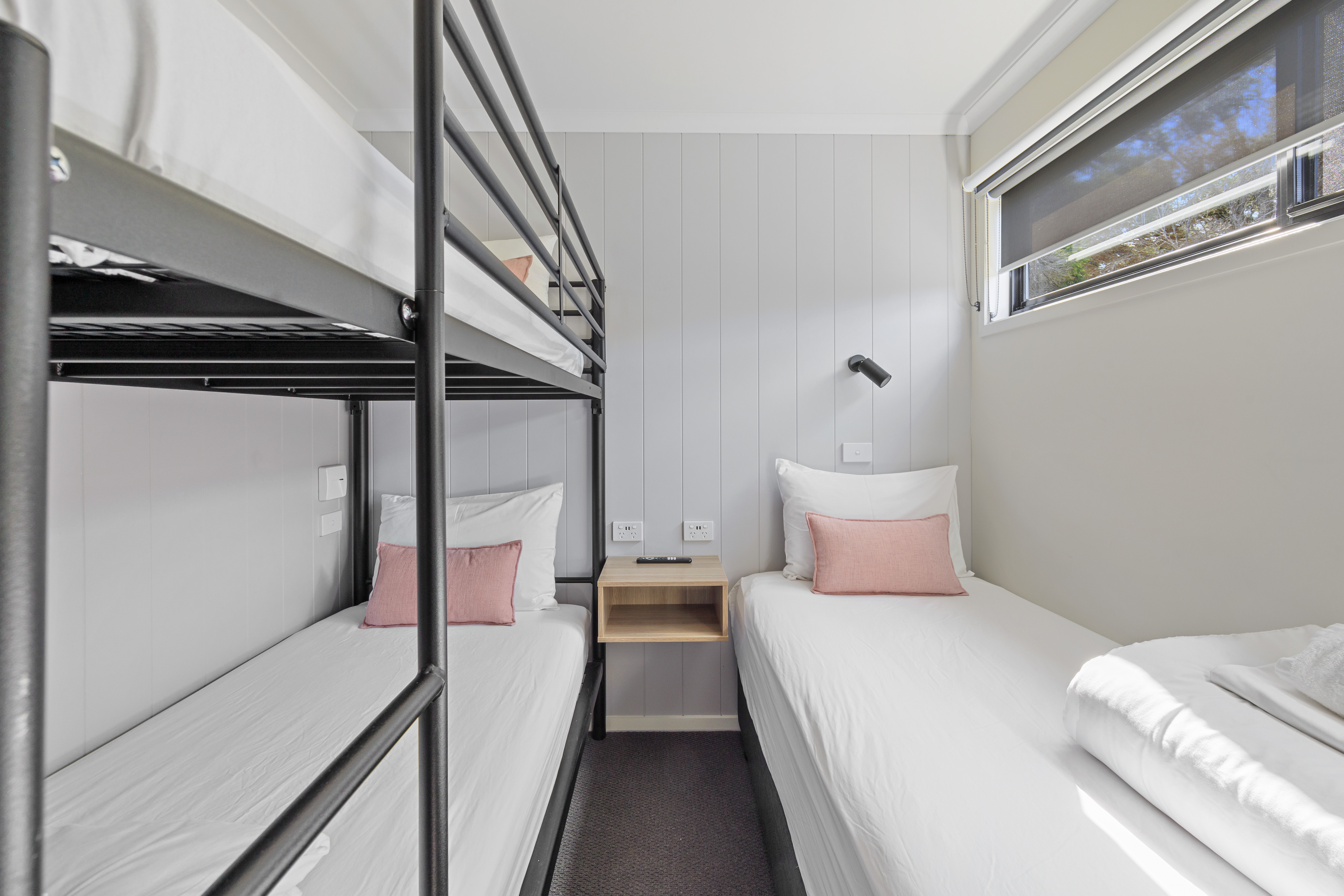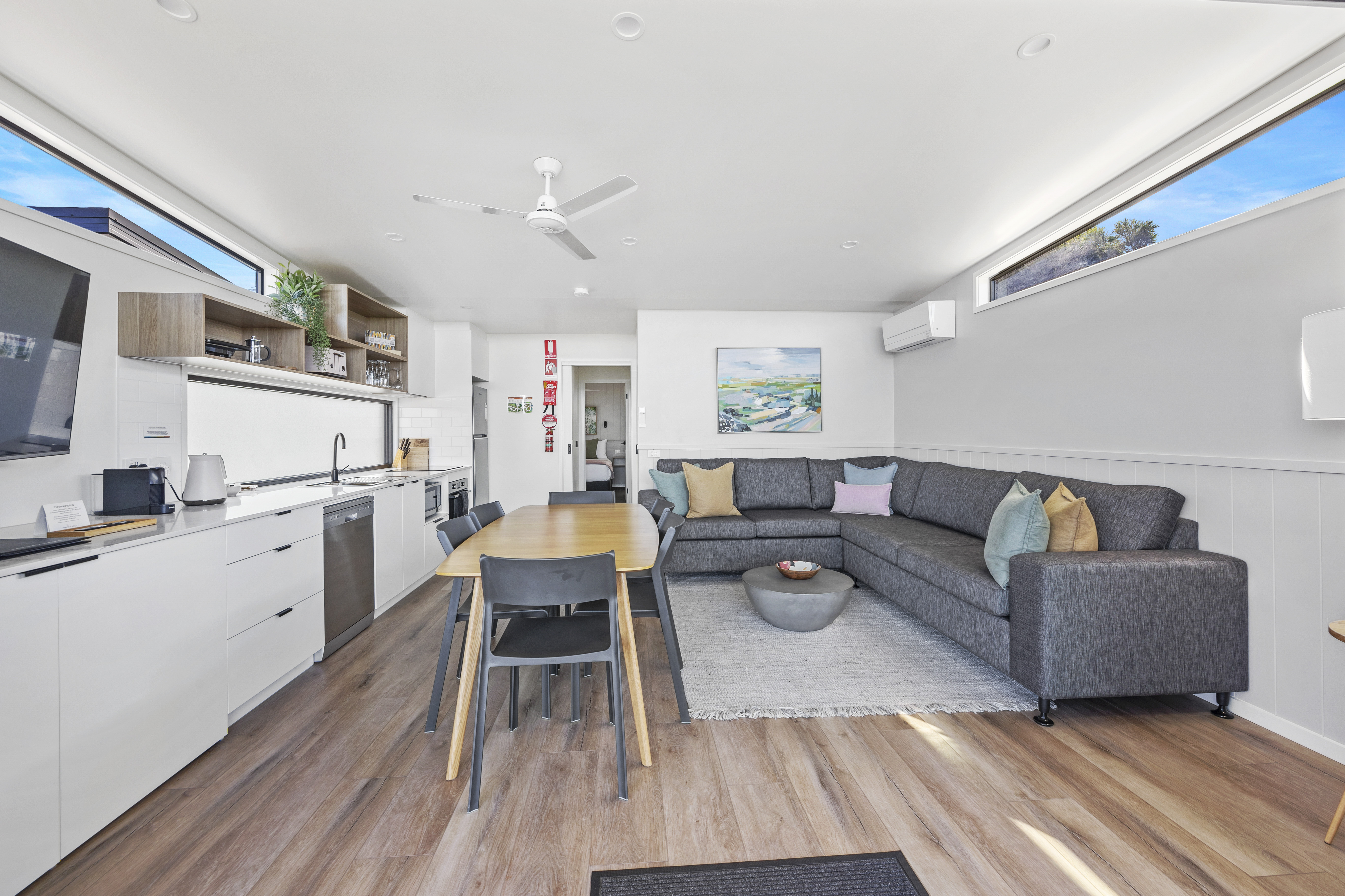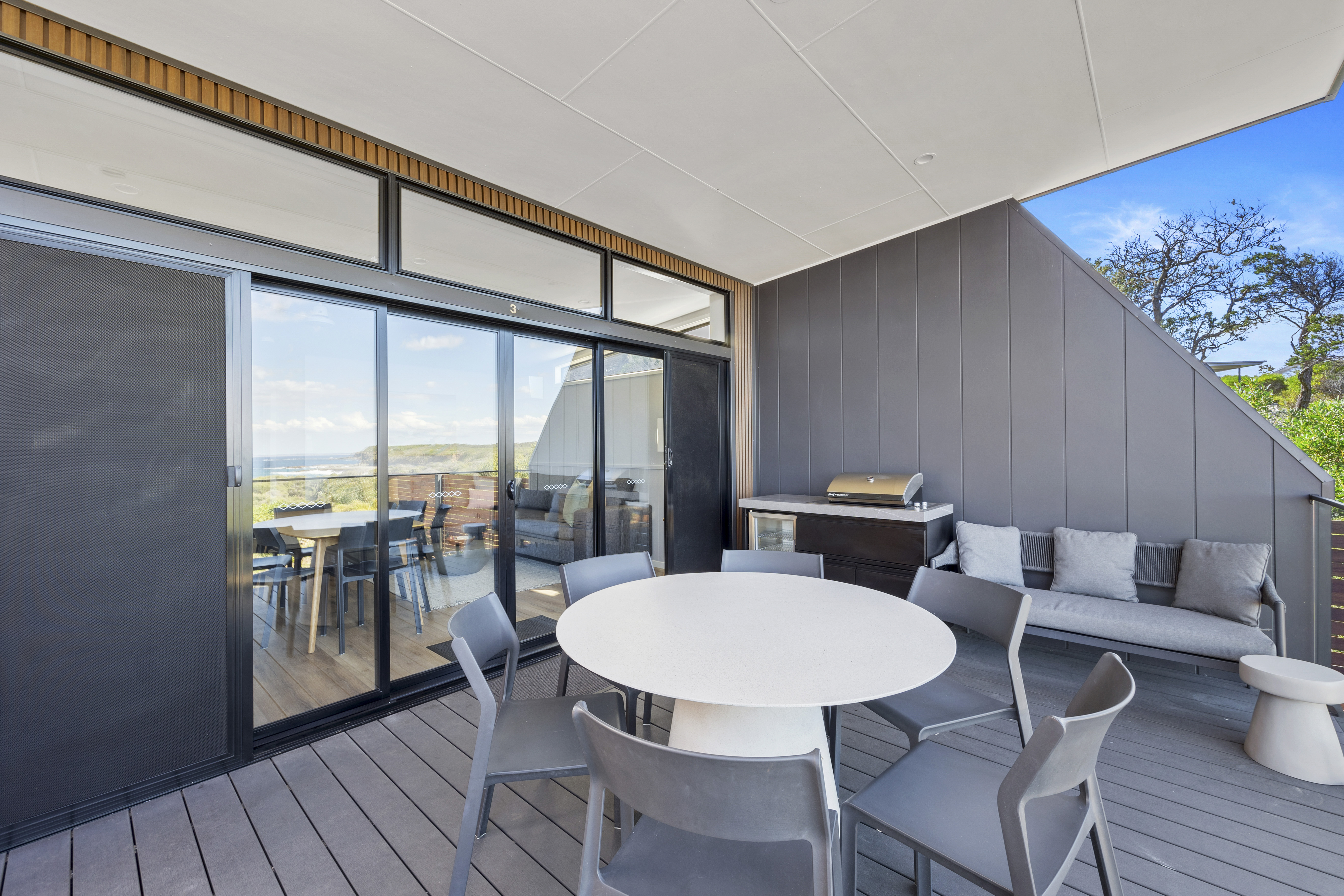 Our 3 Bedroom Ocean View Villas sleep up to seven guests with a queen bed and ensuite in the main bedroom, a bunk and single bed in the second bedroom and a double bed in the third bedroom, as well as a second bathroom, large open plan living area and private deck with views across the ocean towards Cape Liptrap.