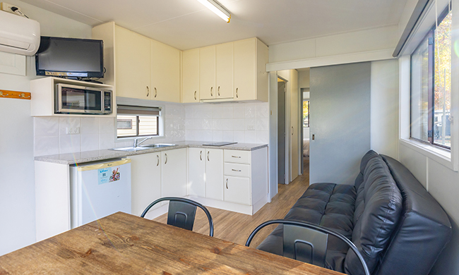 Located a short distance from the river. One-bedroom. One double, one bunk and one sofa bed. Features air-conditioning; kitchenette with bar fridge, stovetop and microwave; bathroom; lounge and dining area; TV and DVD.