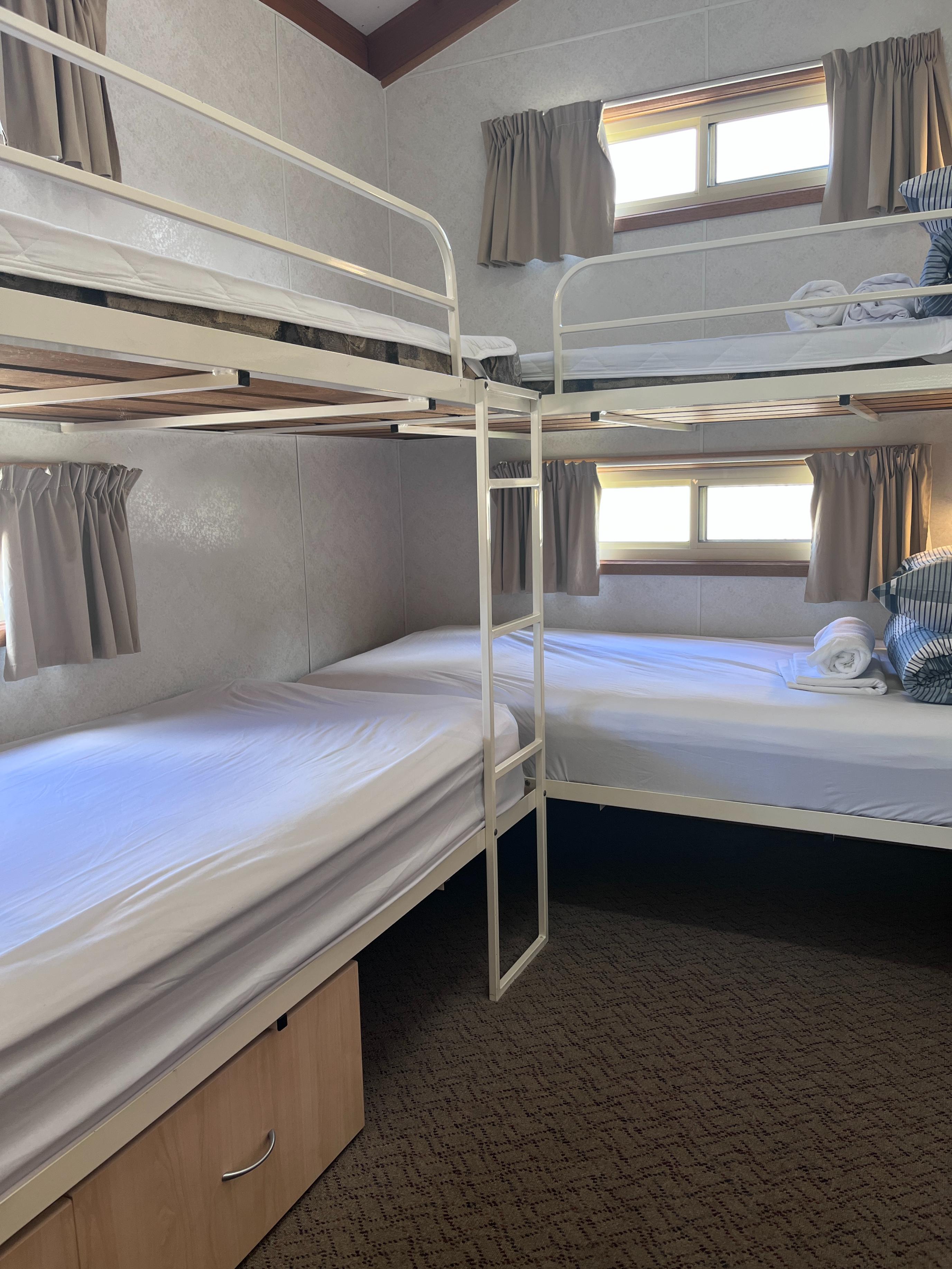 Our 2 Bedroom Deluxe Villa features a queen bed in the master bedroom and two sets of bunks in the second bedroom. All linen is provided!