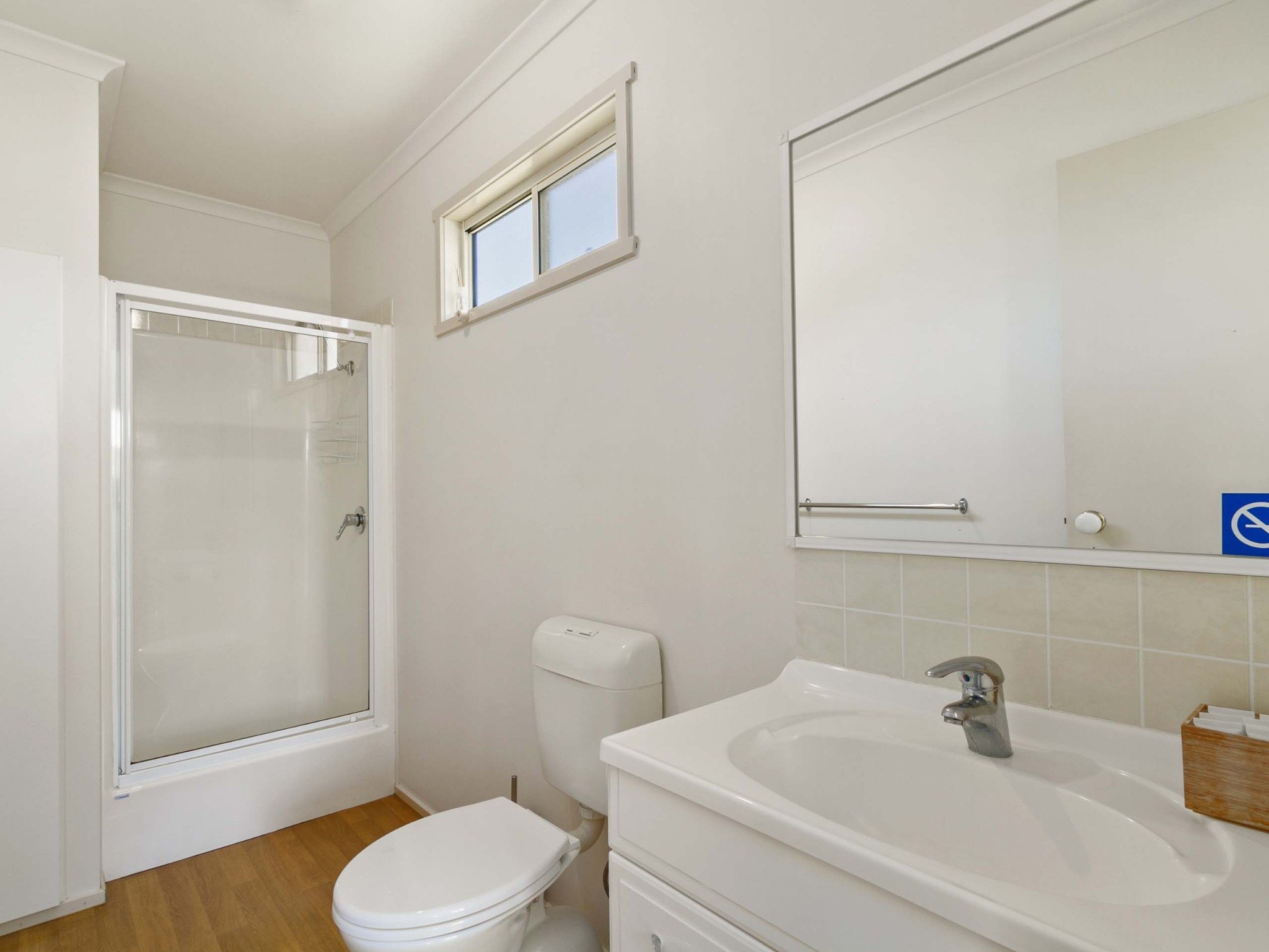 This comfortable studio-style cabin is perfect for couples, offering a queen bed, ensuite bathroom and a compact kitchenette with microwave, stovetop and fridge. Air conditioning, TV and a dining area provide indoor comfort, while the private verandah with outdoor seating invites you to relax and soak up the coastal atmosphere.