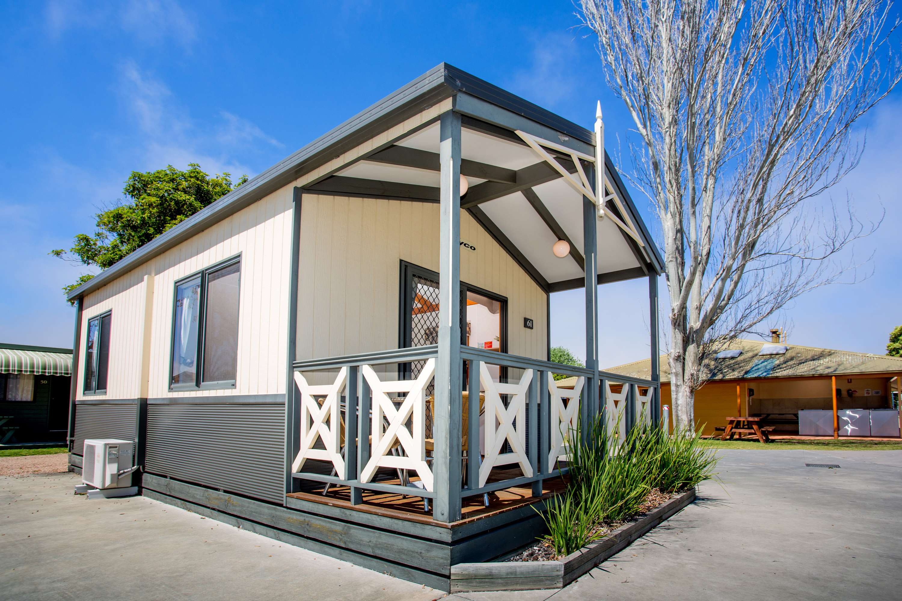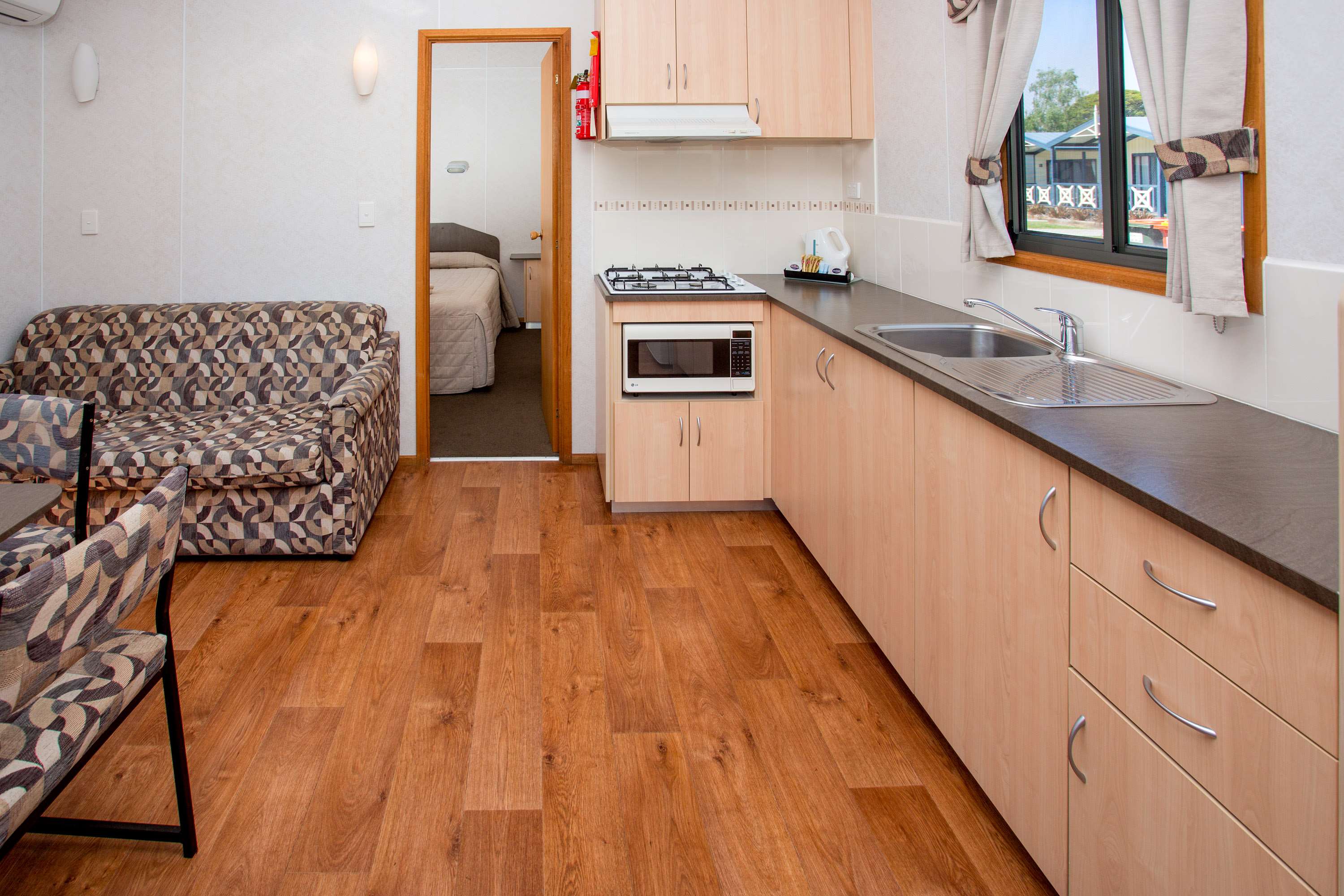 Our 1 Bedroom Villas are the perfect option for couples. They have a queen bed with linen provided in a separate bedroom and separate ensuite. They are fully self-contained including LCD TV, fridge and microwave. Verandah with outdoor setting.