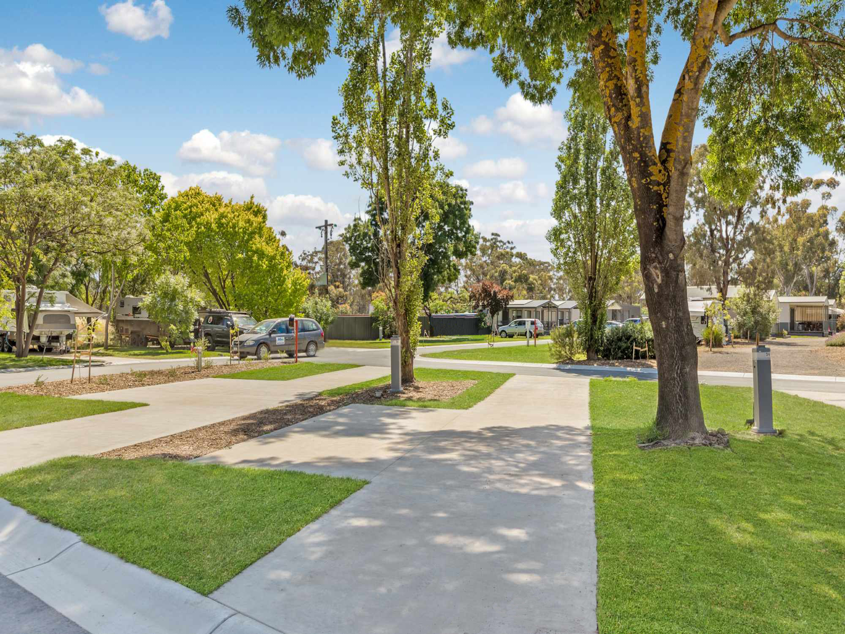 Extra-large concrete powered sites with grass and of ample shade is on offer. All these sites are huge! They afford the ability to drive-through without unhitching. Our sites cater for big rigs such as 5th wheelers and buses. All sites are located in close proximity to our centrally located amenities, camp kitchen and BBQ facilities.