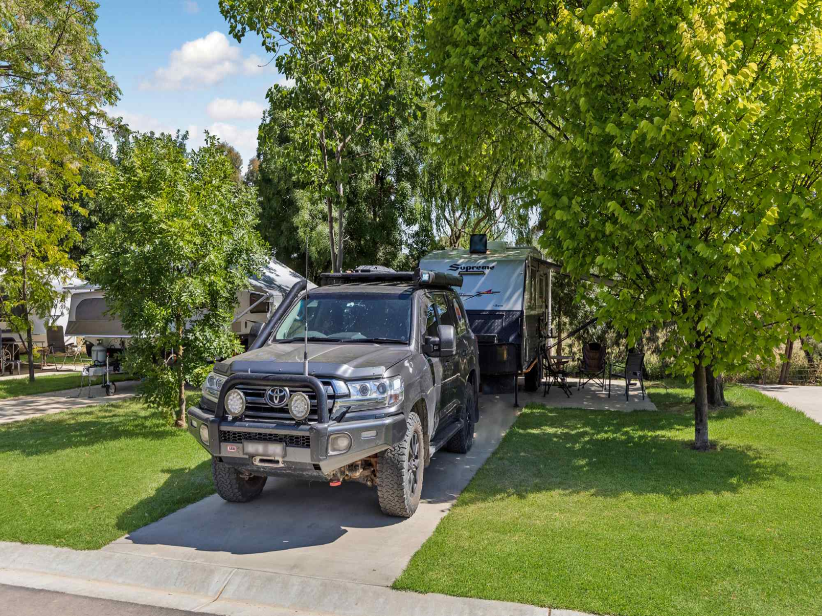 Our ensuite sites are large powered sites which have an ensuite located at the rear of the site. Each ensuite site comes complete with concrete pad and a shower, toilet and vanity unit in the ensuite.