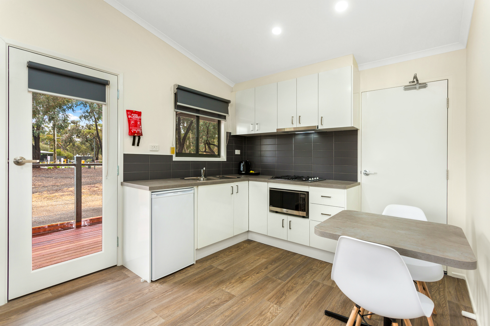 This newly installed Studio Cabin has a queen bed, kitchenette, 50 inch TV, sofa couch & ensuite. Linen, pillow & towels provided.