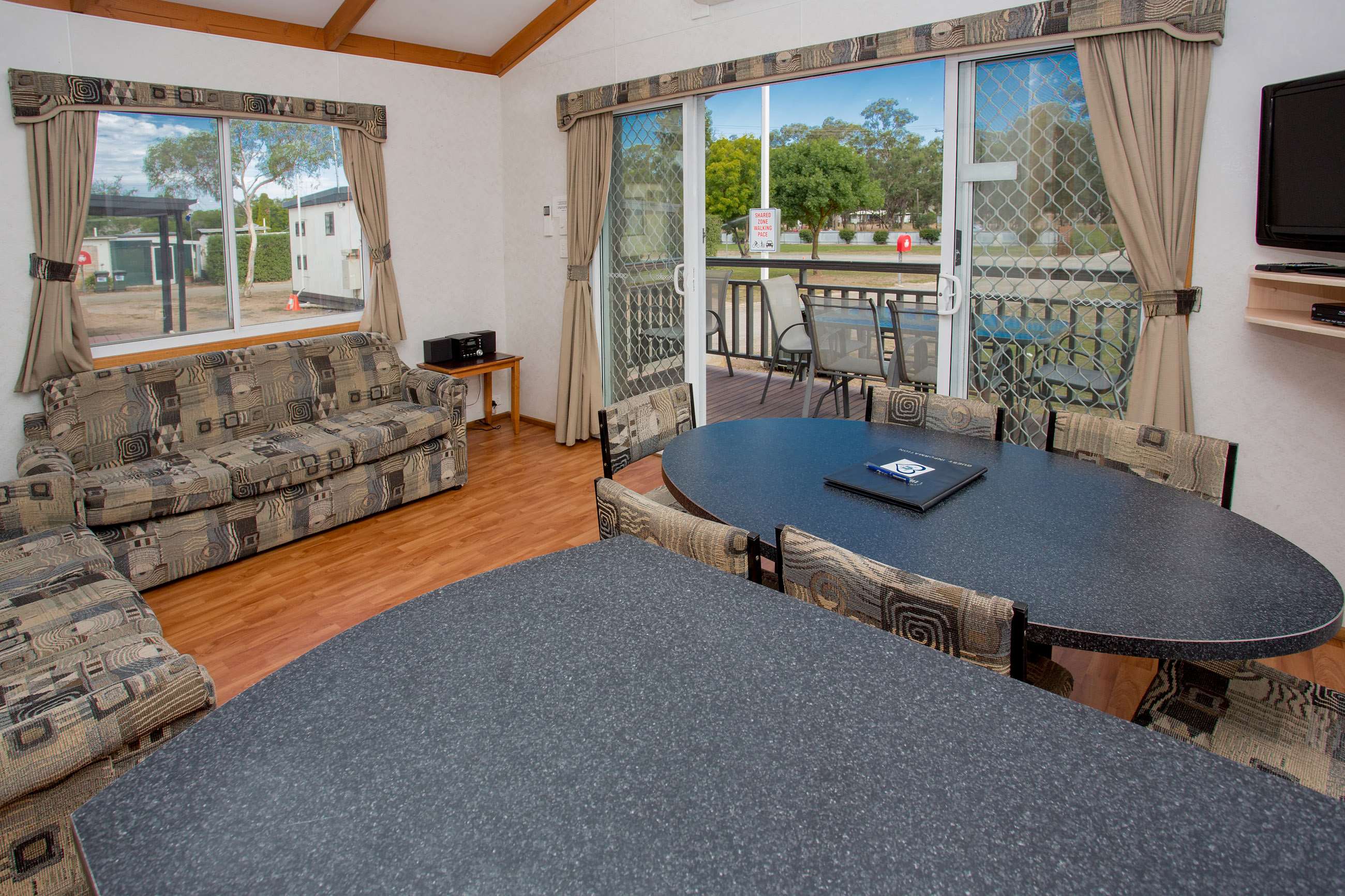 Bunk Beds: Please be advised: Work Law Health & Safety state that operators must comply with the Australian Standard AS/NZS 4220:2003 “Children under the age of 9 years are not permitted to use the top bunk, children must not play on top bunk”. Please take this into consideration when making your booking.
