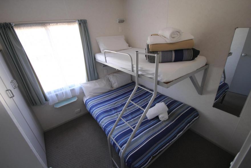Bunk Beds: Please be advised: Work Law Health & Safety state that operators must comply with the Australian Standard AS/NZS 4220:2003 “Children under the age of 9 years are not permitted to use the top bunk, children must not play on top bunk”. Please take this into consideration when making your booking.