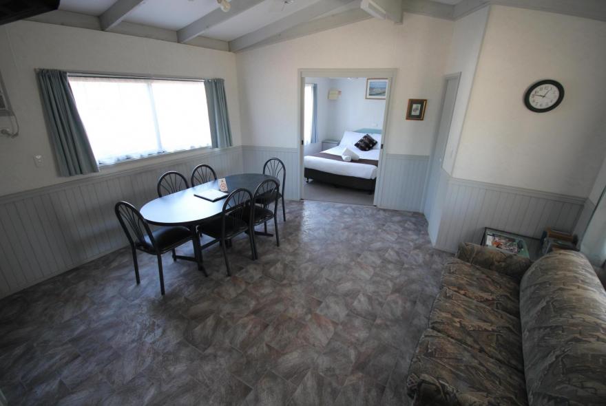 Standard Cabins are a great space to enjoy your holiday with the family. The functional space provides you with all your needs and sleeps 5 across 2 bedrooms with an open plan kitchen, living and dining space and verandah.