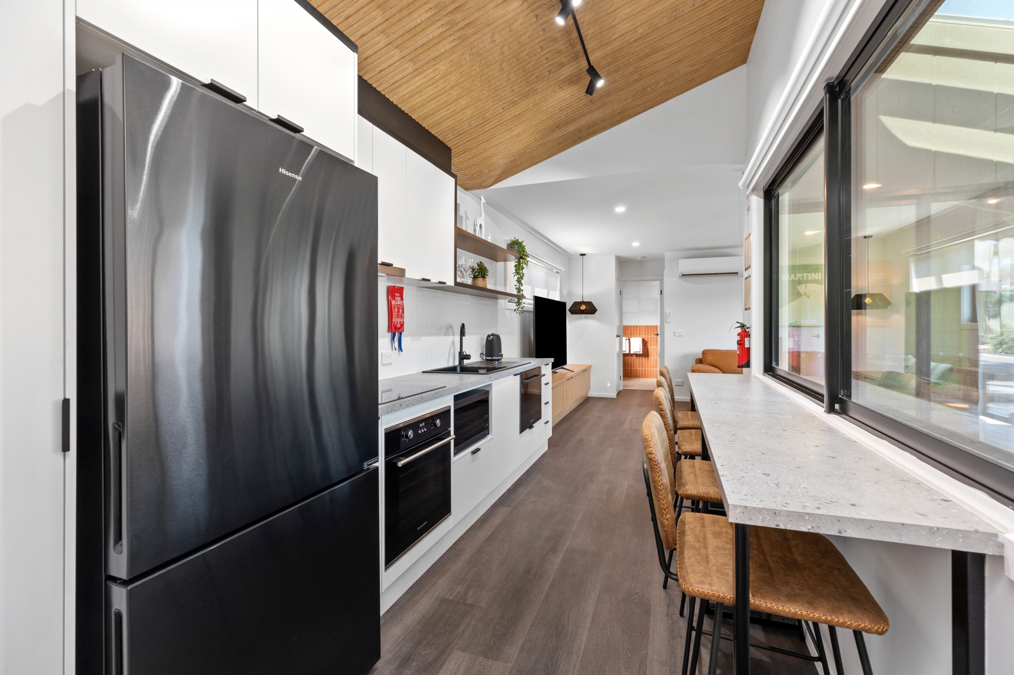 Enjoy the space and comfort of our luxurious Two Bedroom Superior Family Cabin. With the ability to accommodate up to 6 people comfortably, our cabins are perfect for a large group of family or friends. The spacious plan will have you socialising with ease in your kitchen, dining and lounge area. Begin your day with the convenience of two separate bathrooms, making for a great start to any holiday.
