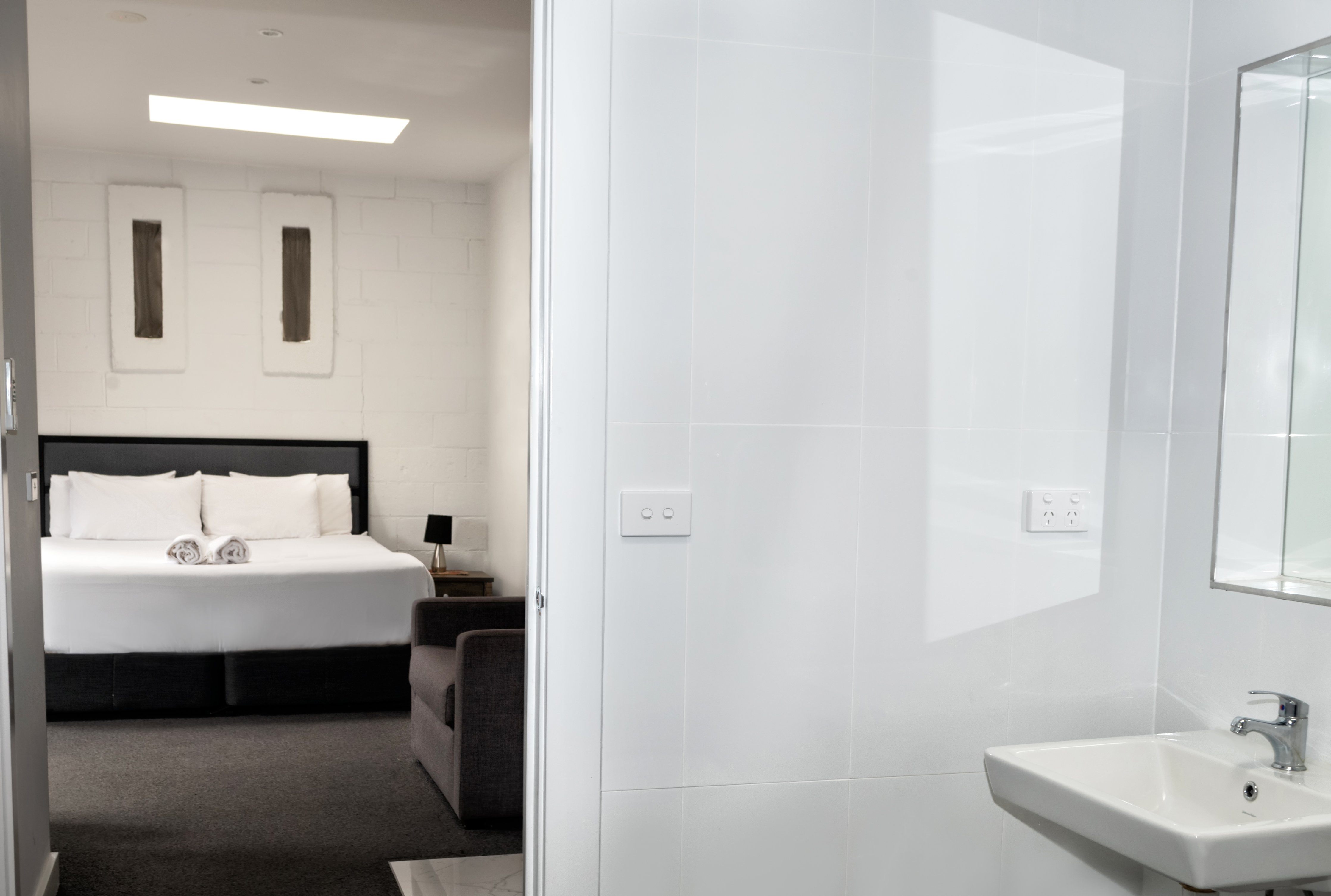 This Accessible Family Room, located inside the Castle walls, is for those who need a little more space. Easily accessible by its front veranda, this room has an amazing king bed, a separate room with a triple bunk bed and a king single bed. This room offers an 40" TV, free wi-fi, tea and coffee making facilities, split system air-conditioning, fridge, microwave, toaster, hand woven European Tapestry and a wheelchair friendly bathroom. Children under the age of 4 are free if sleeping in the same bed as parents.