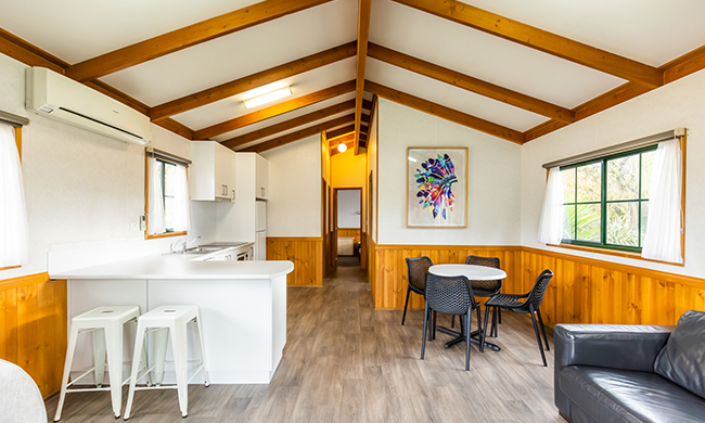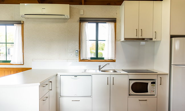 In a central location within the park in close proximity to facilities. One king and two singles. Features air-conditioning; heating; full kitchen with stovetop, oven, microwave, fridge and dishwasher; lounge and dining room; TV and DVD; one bathroom with spa; separate toilet; washing machine; verandah with outdoor furniture.