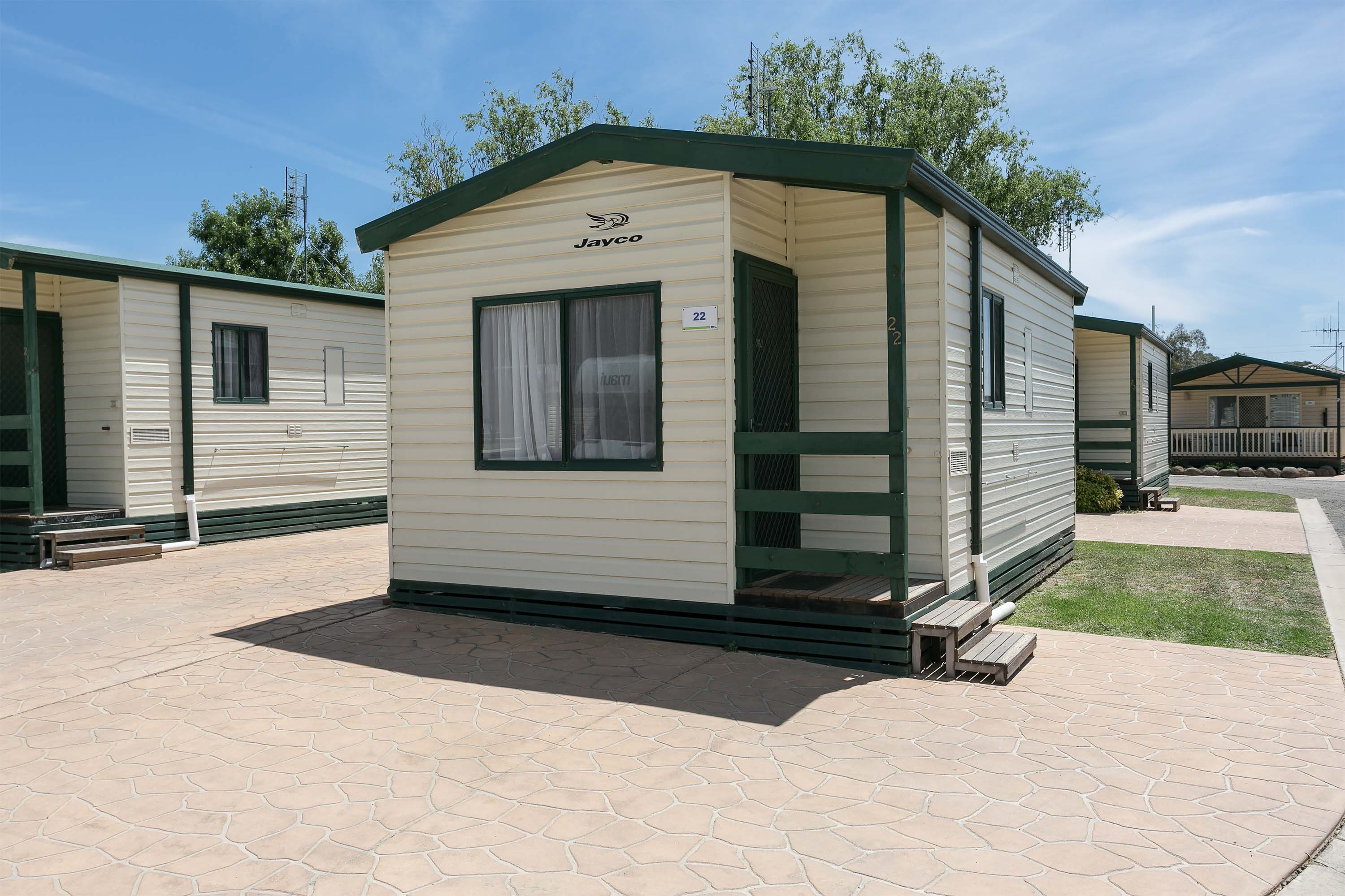 Dogs are allowed on Powered Sites, Ensuite Sites, The Pooch Pad and The Doghouse (pets are not allowed in any other cabin accommodation).