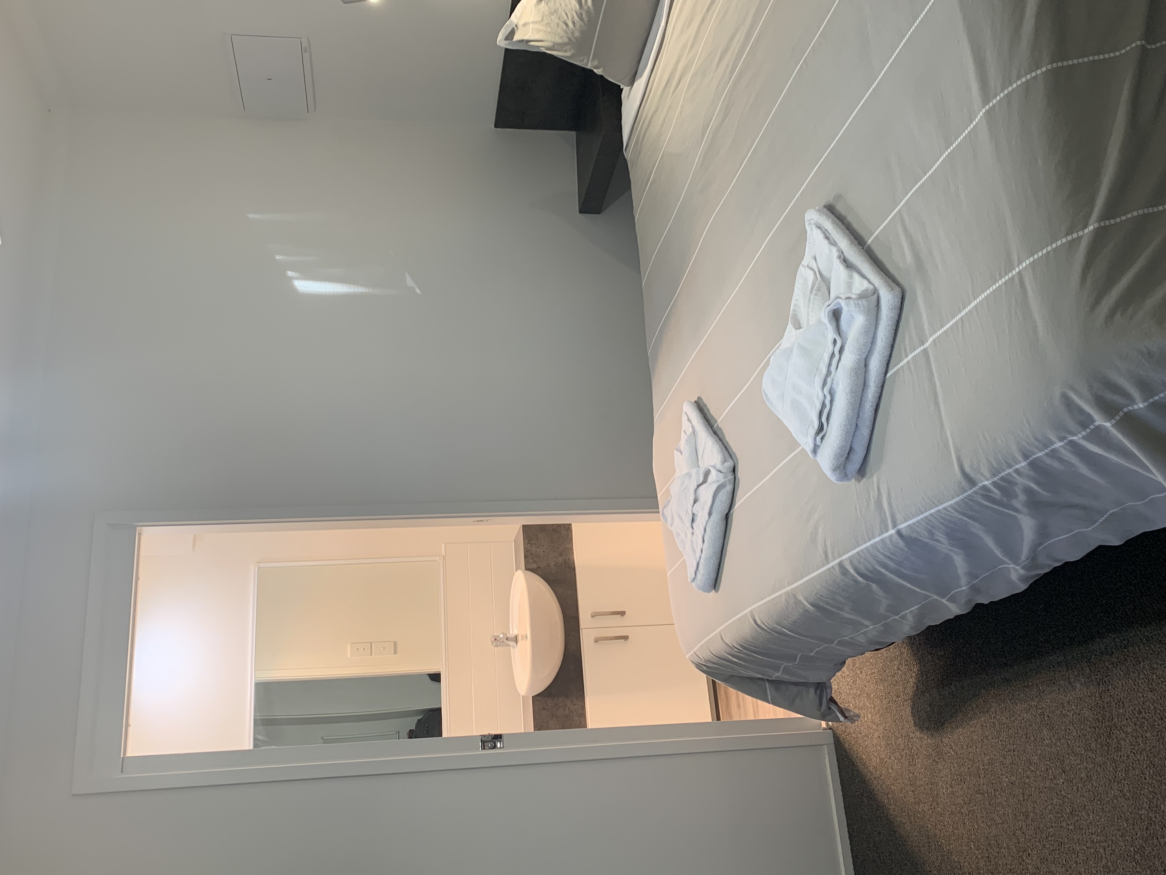 Our Luxury 2 Bedroom Cabins offer a queen or king bed with TV in the main bedroom and a double bed or 2 bunk beds in the second bedroom. They have split system air-conditioning and ceiling fans, bathroom with hairdryer, full kitchen with oven and dishwasher, dining area and 2 x 2-seater lounges with TV, and a furnished deck with car parking alongside.