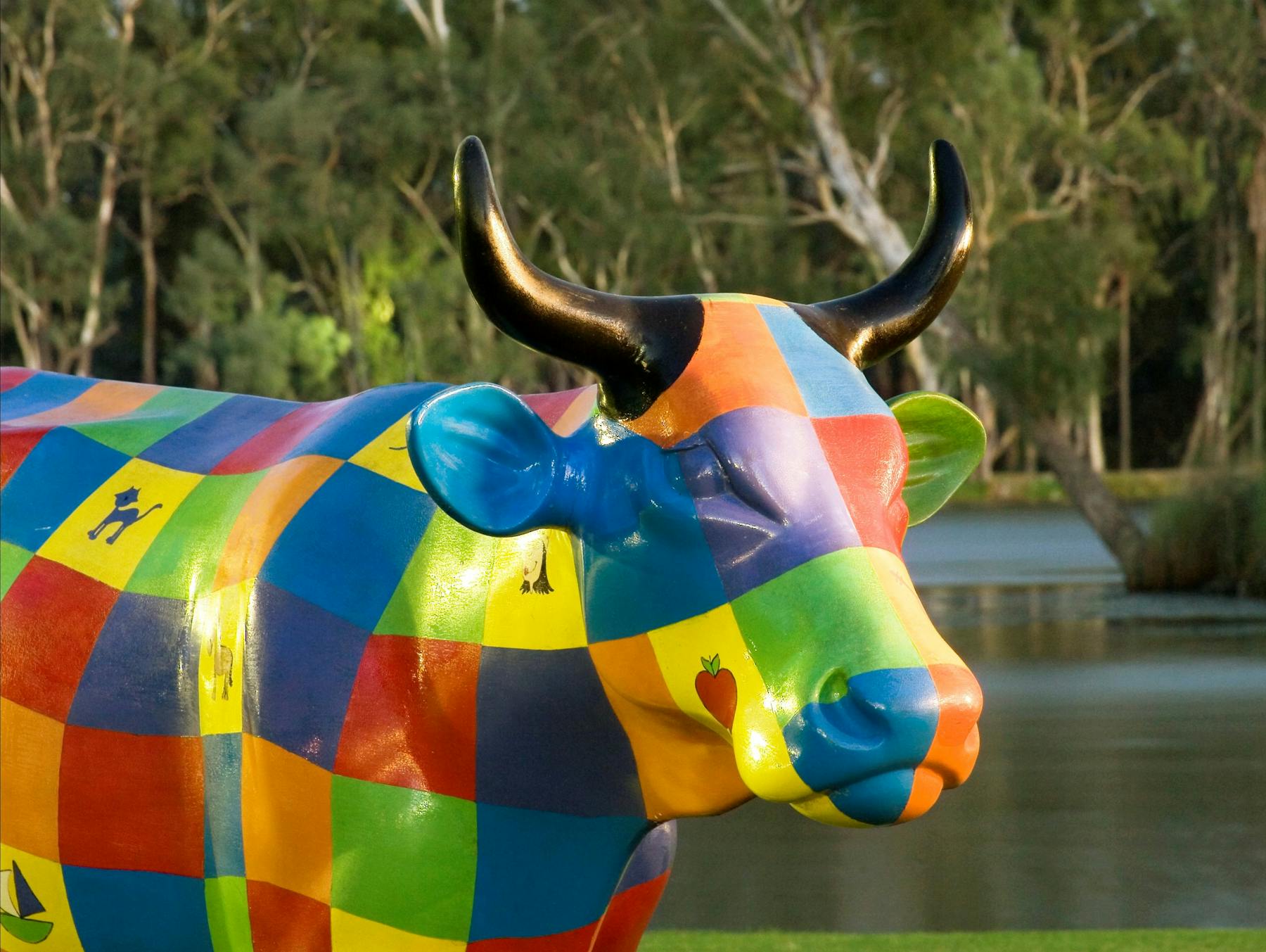 Moooving Art is a unique and ever-changing public art exhibition. Scattered across Shepparton and Goulburn Valley's parks, gardens, riverbanks and public spaces is an array of colourful, ever-changing fibreglass cows that make up the Moooving Art herd.