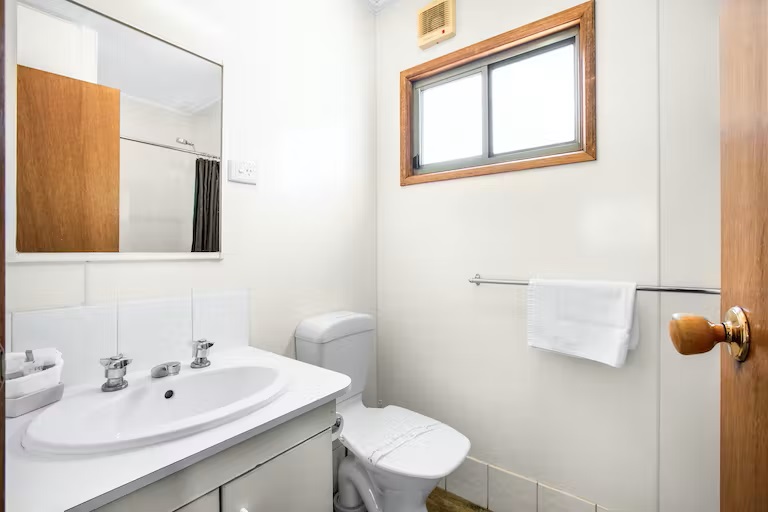 The open-plan cabin has a self-contained kitchen including a fridge, microwave, stovetop and plenty of crockery and cutlery with a dining area, and a TV in the living area. The bathroom in the cabin includes a shower, toilet and vanity. The cabin is air-conditioned for your comfort.