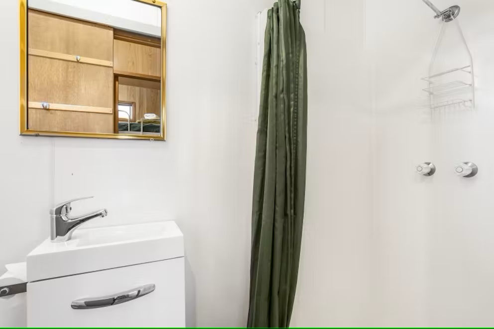 The cabin has a kitchenette including a fridge, microwave, stovetop and plenty of crockery and cutlery and a living-dining area, with a TV. The bathroom in the cabin includes a shower, toilet and vanity. The cabin is air-conditioned for your comfort.
