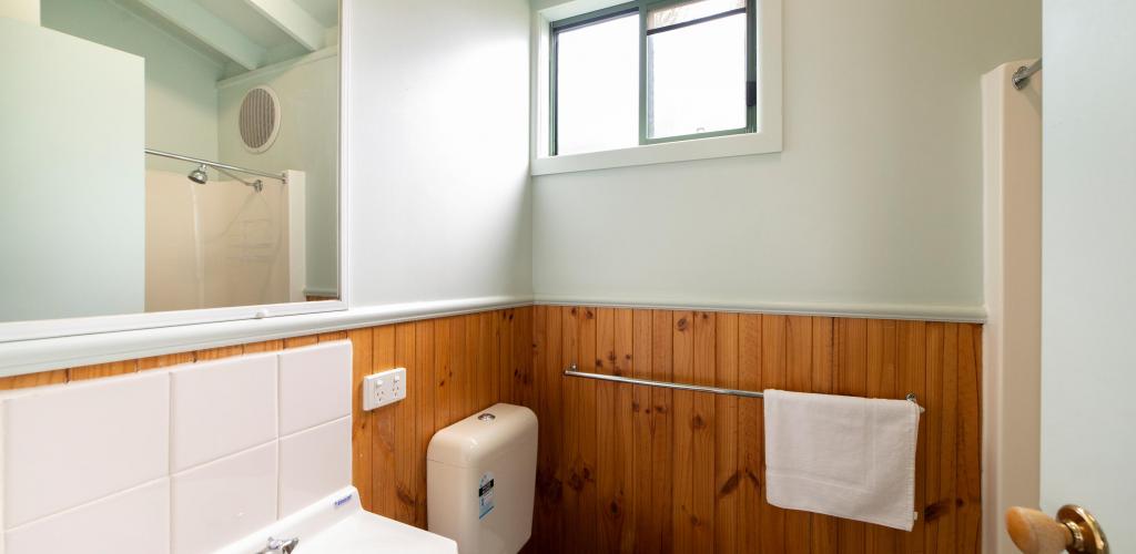 The open-plan cabin has a self-contained kitchen including an oven, fridge, microwave, stovetop and plenty of crockery and cutlery with a dining area, and a TV in the living area. The bathroom in the cabin includes a shower, toilet and vanity, The cabin is air-conditioned for your comfort.