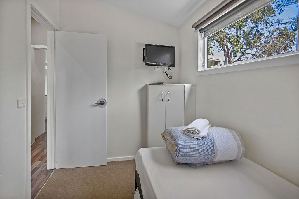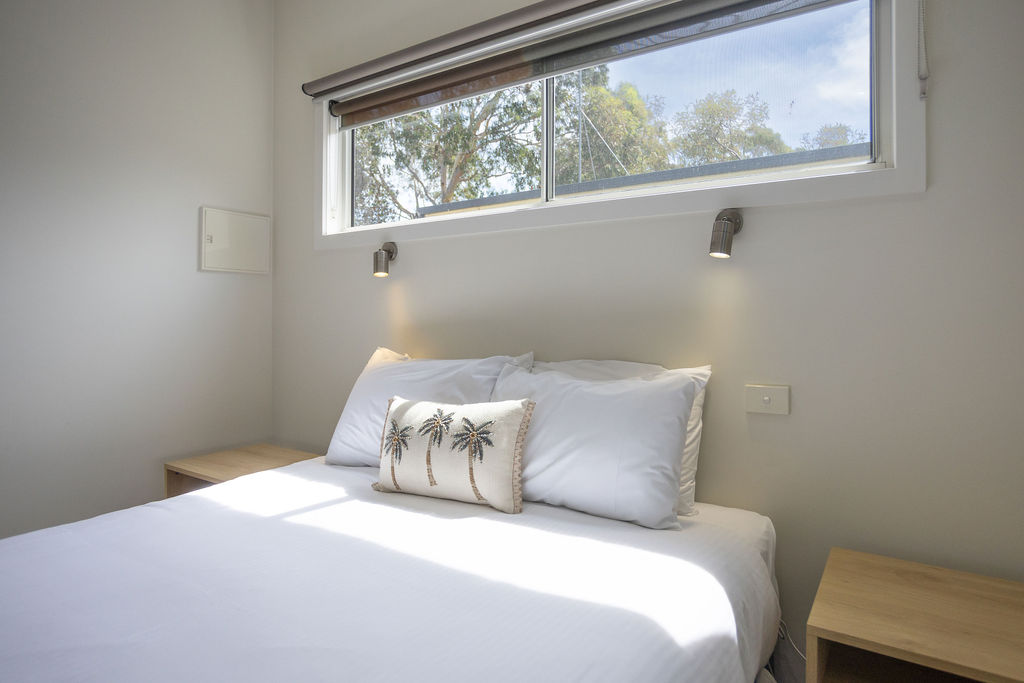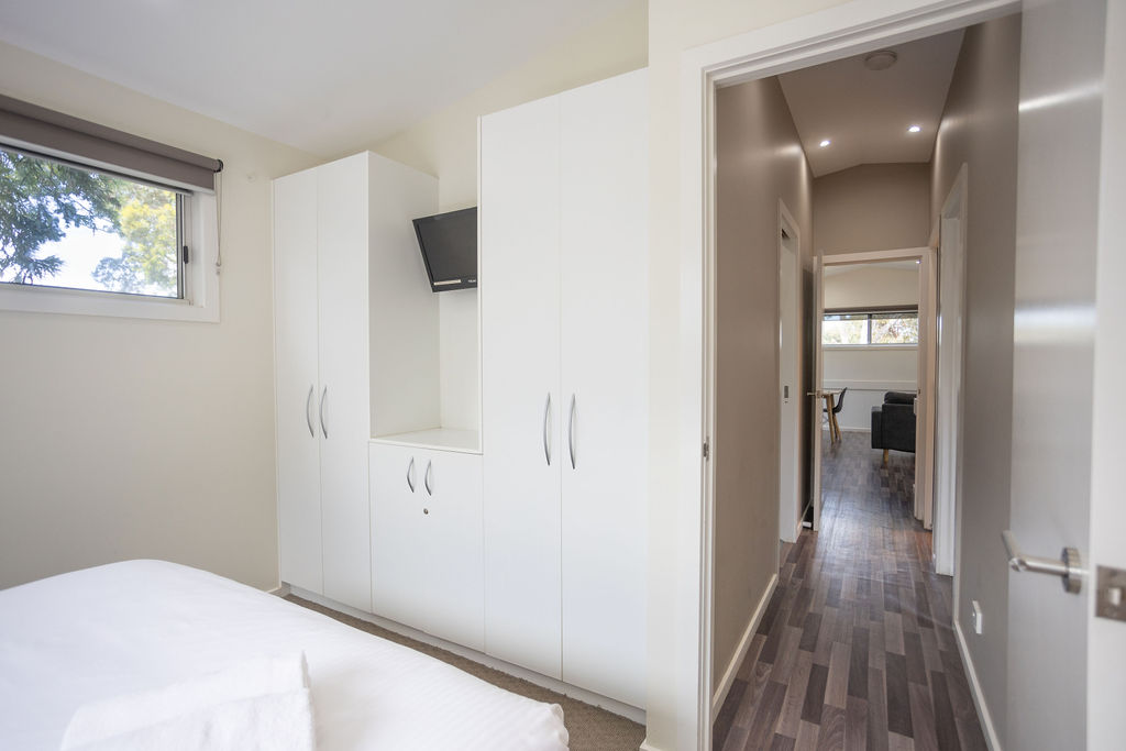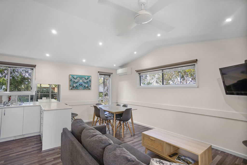 Conveniently situated near the pool area, our three-bedroom deluxe cabin offers modern accommodations suitable for families of up to 8 people or groups of friends. With spacious interiors ideal for extended stays or larger families, these cabins feature fully equipped kitchens and a comfortable living area with dining table, couch, TV and complemented by reverse cycle air conditioning.