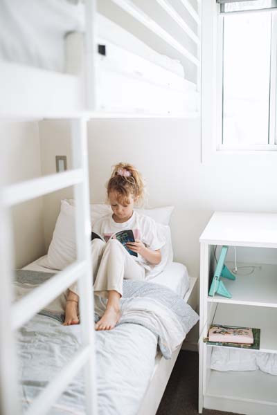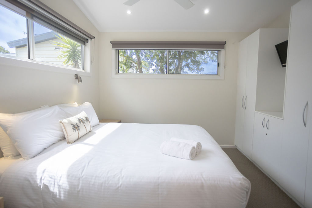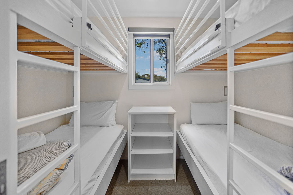 The main bedroom boasts a queen-sized bed and an ensuite bathroom for added privacy. A separate bunk room comfortably sleeps 2 adults or up to 4 children in two sets of bunks, while the third bedroom offers a single bed with space for a portacot or a trundle bed.