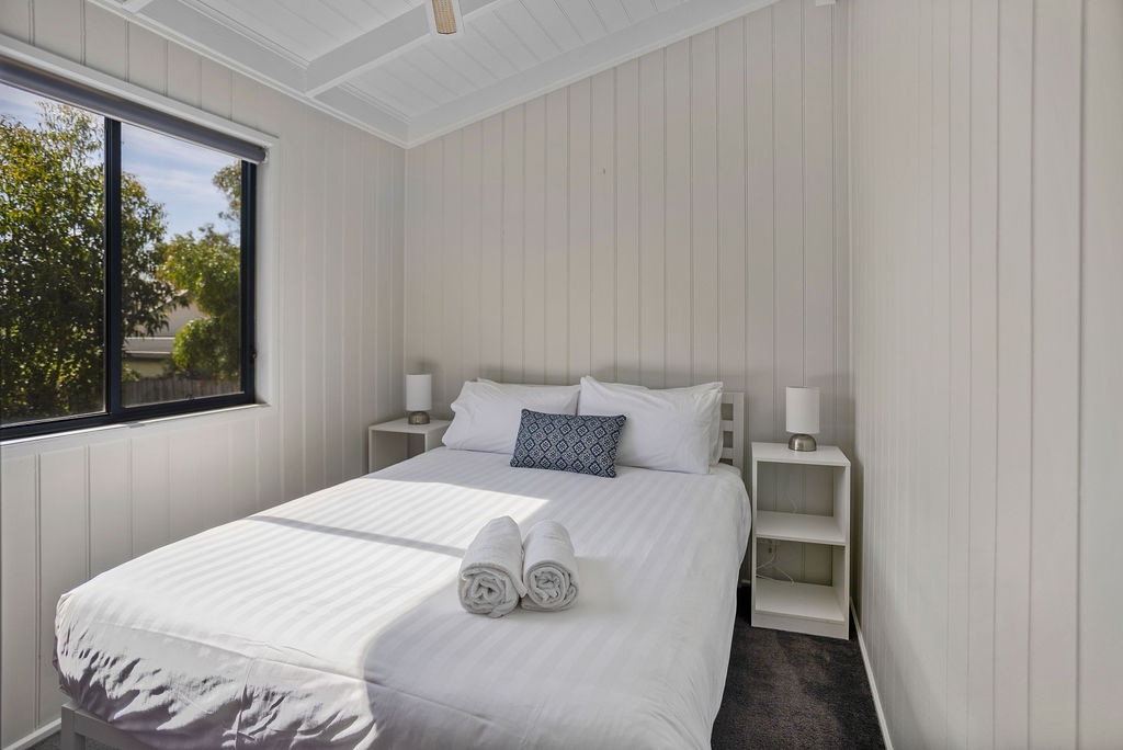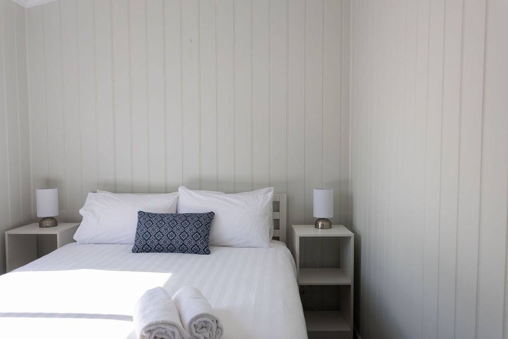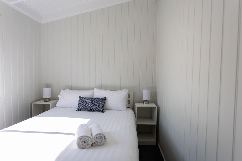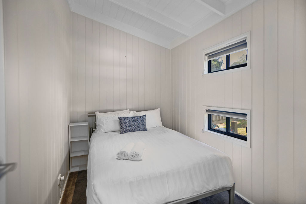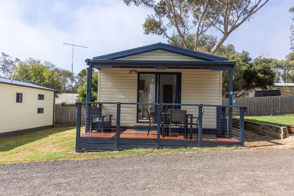 This self-contained cabin has a queen-sized bed in one bedroom and a double bed in the second bedroom. A comfortable living area with dining table, couch and TV, plus reverse cycle air conditioning leads through to your private bathroom.