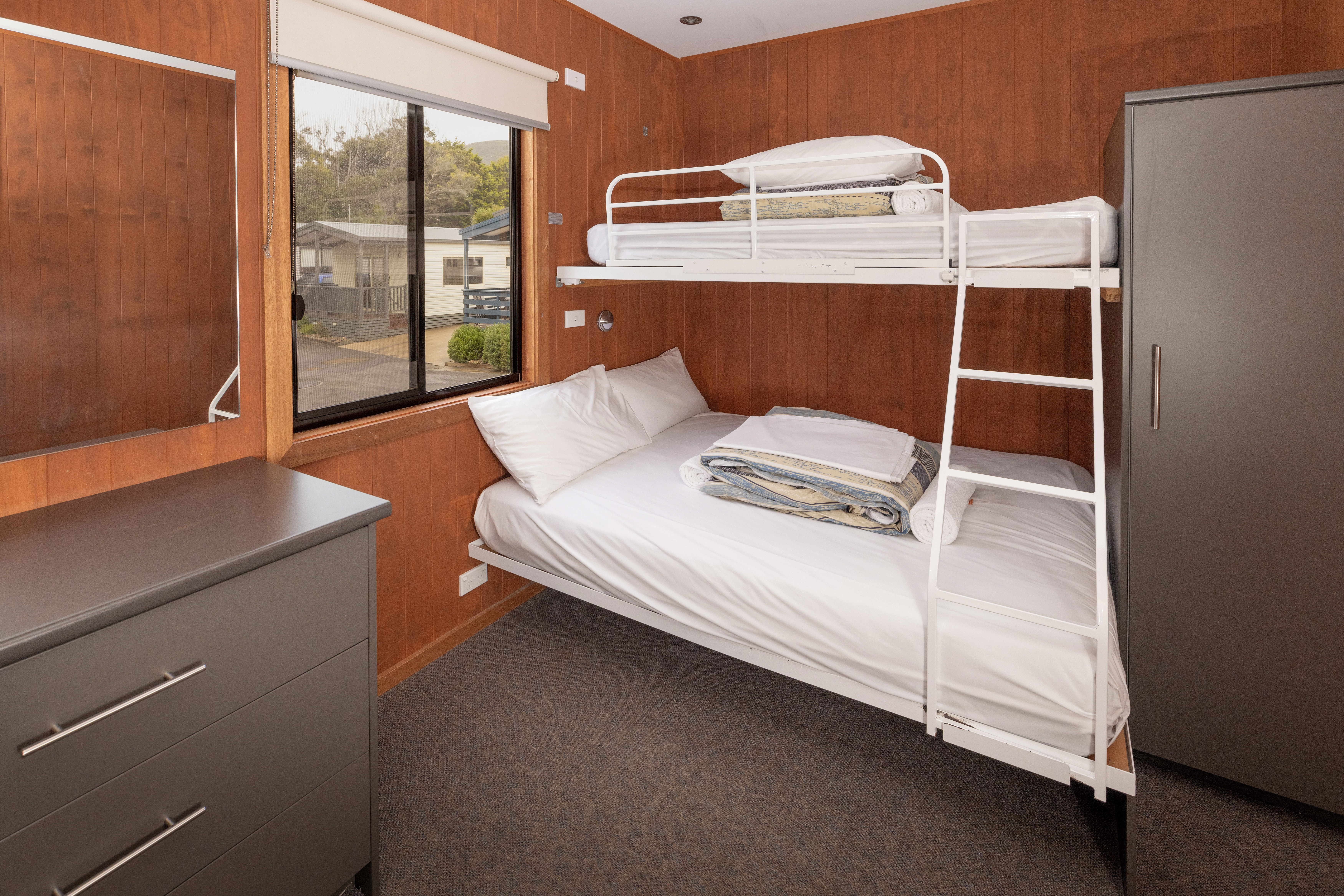 - Australian standards relate to the use of bunk beds and state that “Children under the age of 9 years are not permitted to sleep in the top bunk”, and “Children must not play on the top bunk”. Please take this into consideration when making a booking.