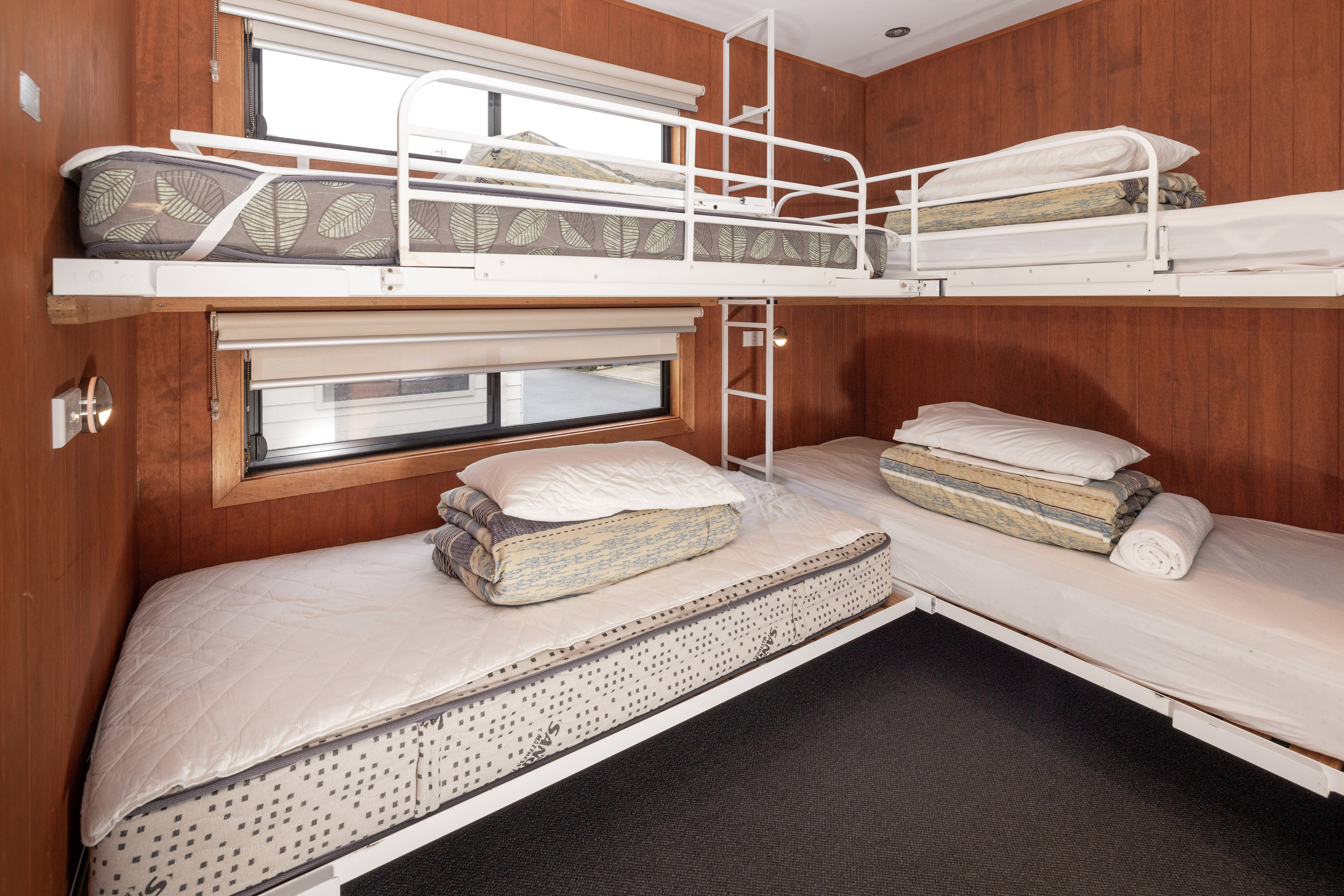 - Australian standards relate to the use of bunk beds and state that “Children under the age of 9 years are not permitted to sleep in the top bunk”, and “Children must not play on the top bunk”. Please take this into consideration when making a booking.