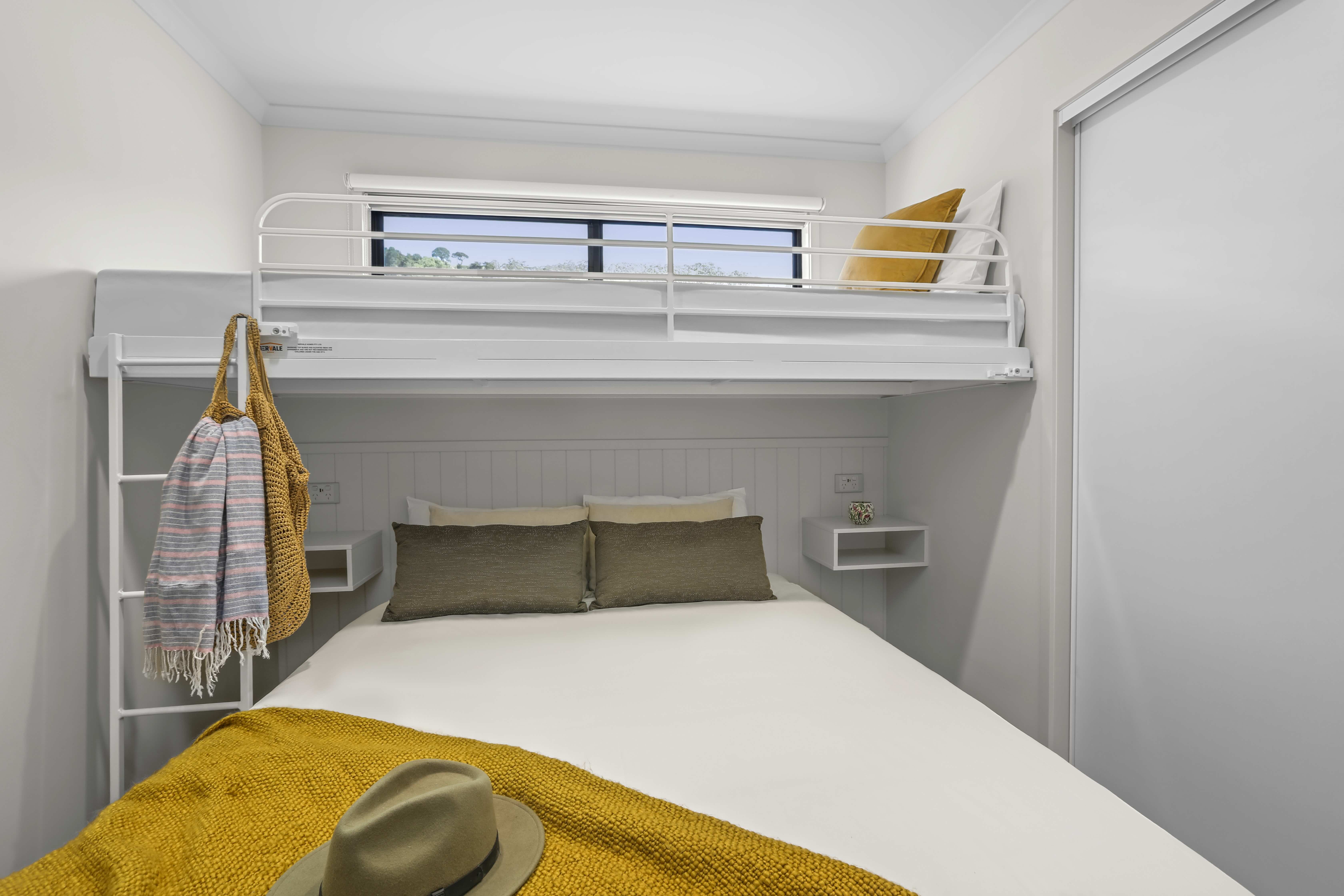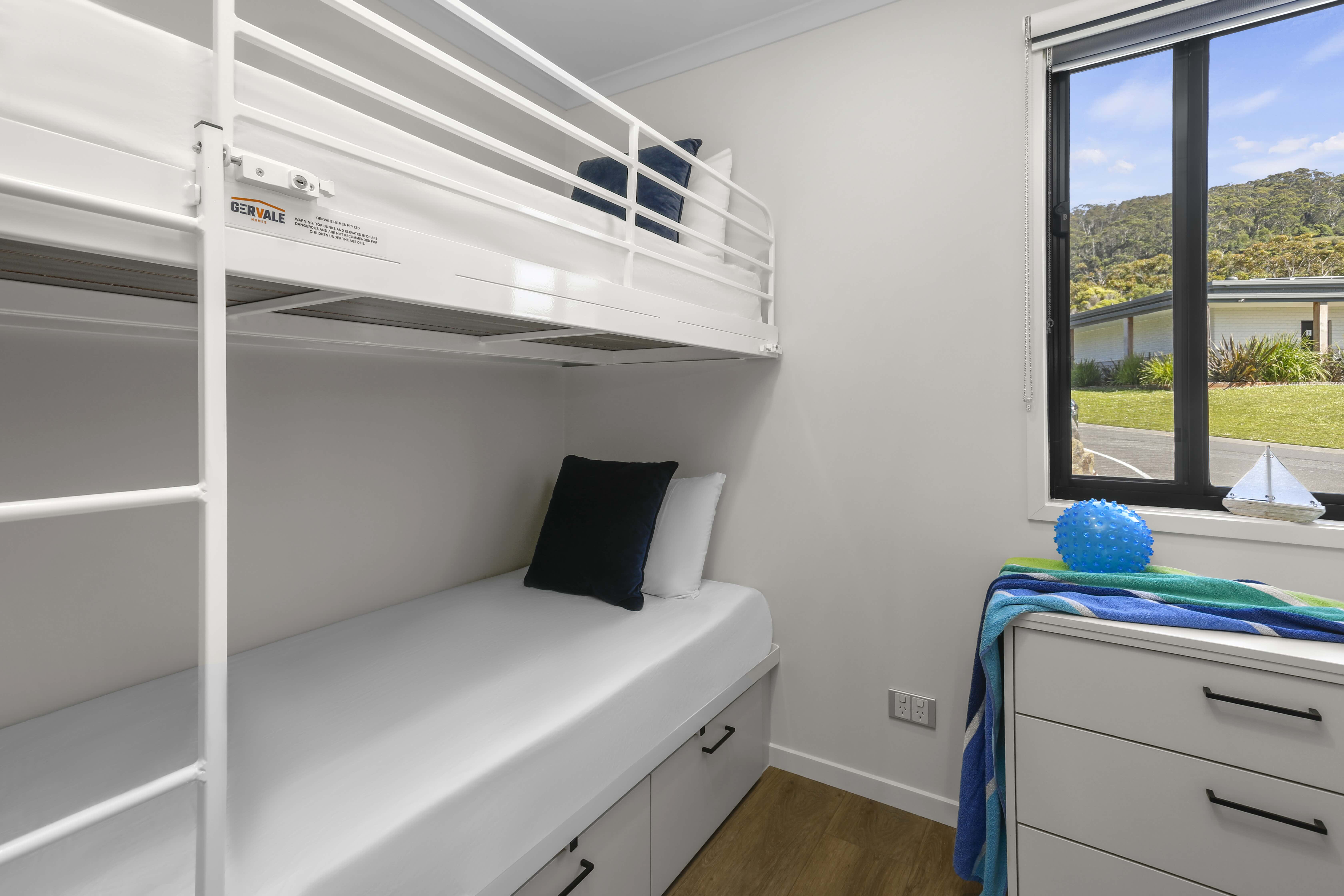 - Australian standards relate to the use of bunk beds and state that “Children under the age of 9 years are not permitted to sleep in the top bunk”, and “Children must not play on the top bunk”. Please take this into consideration when making a booking.