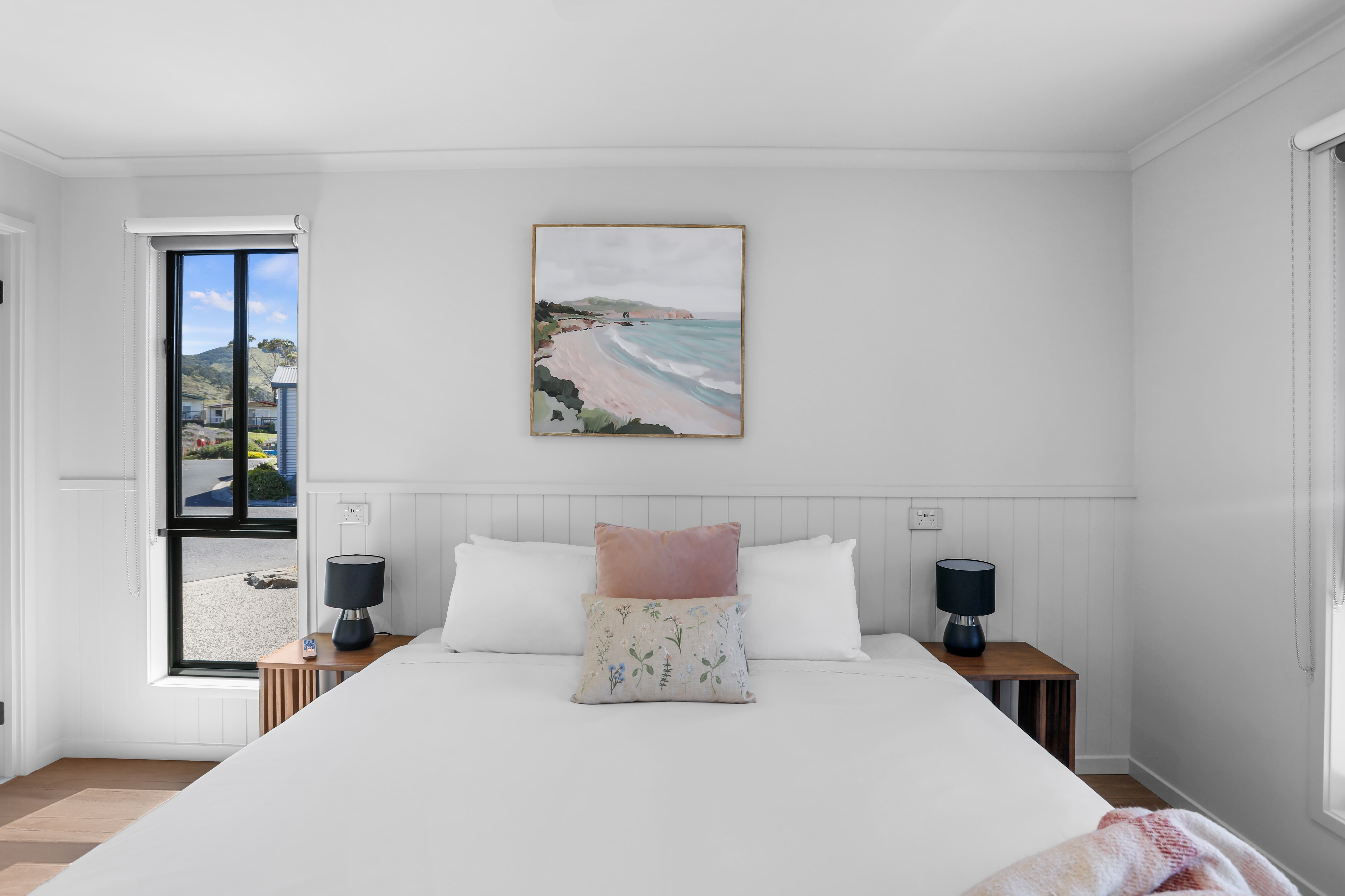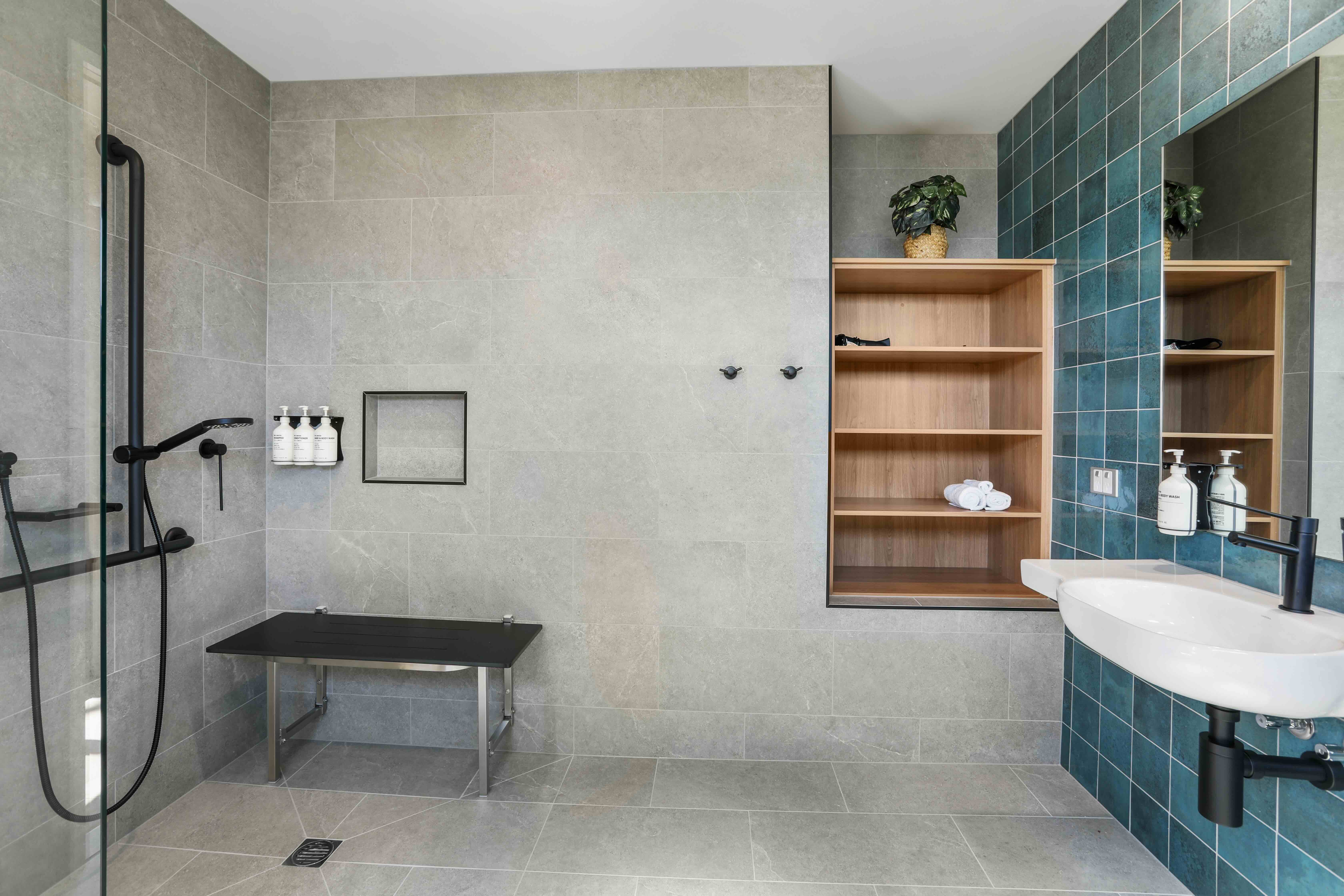 Designed for comfort, space and accessibility, this cabin is ideal for a truly stress-free getaway. The fully self-contained cabin offers three bedrooms, anchored by an oversized, purpose-designed master suite created with accessibility in mind. The master bedroom includes wide door access suitable for wheelchairs or mobility aids, a king-size bed, and a large accessible ensuite featuring a walk-in or roll-in shower with grab rails, plus a supported toilet.