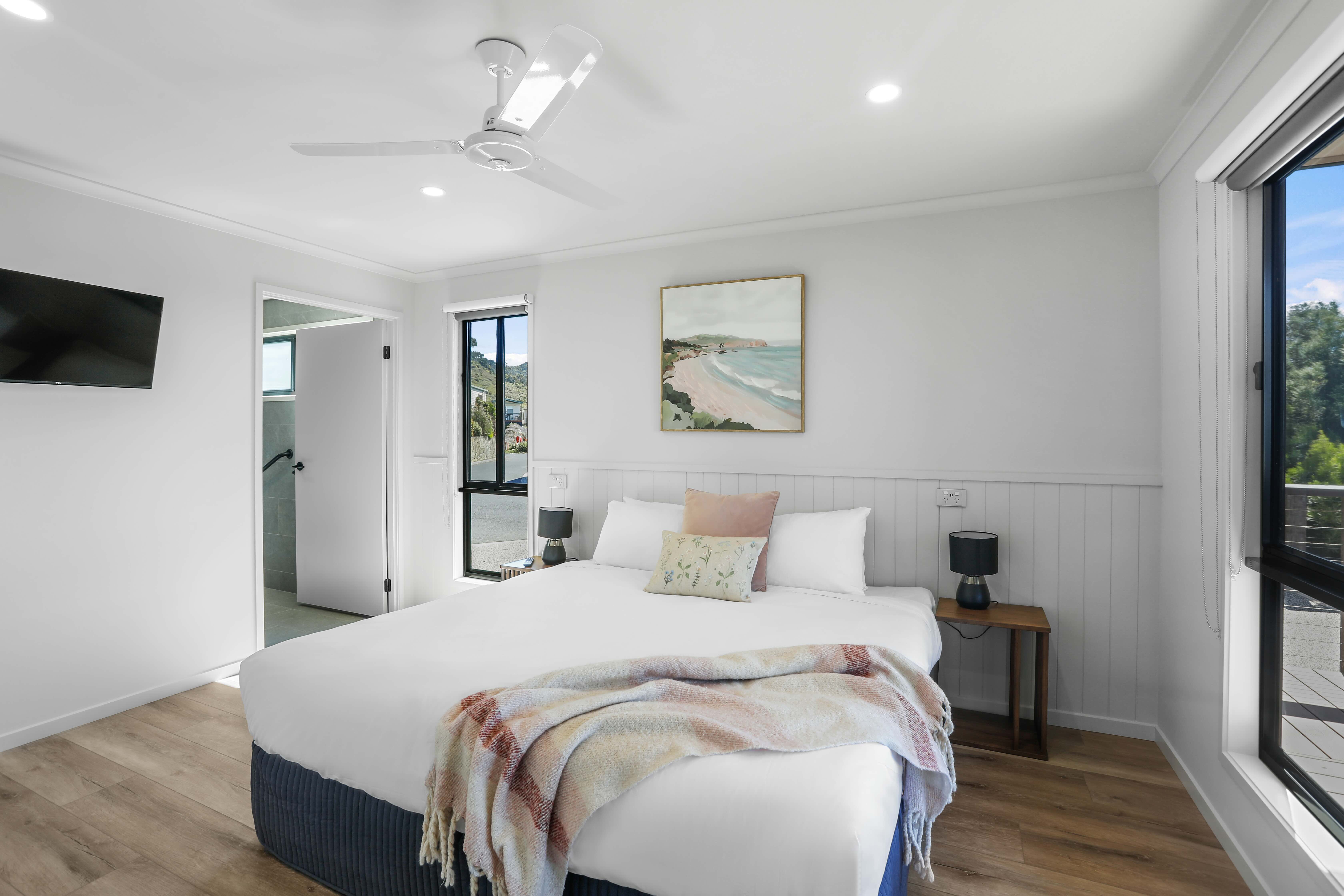 Two further bedrooms offer flexible sleeping for families or groups. One features a queen bed with a single bunk overhead, while the other includes a set of single bunks. A second bathroom and separate toilet ensure everyone has space and comfort during their stay.