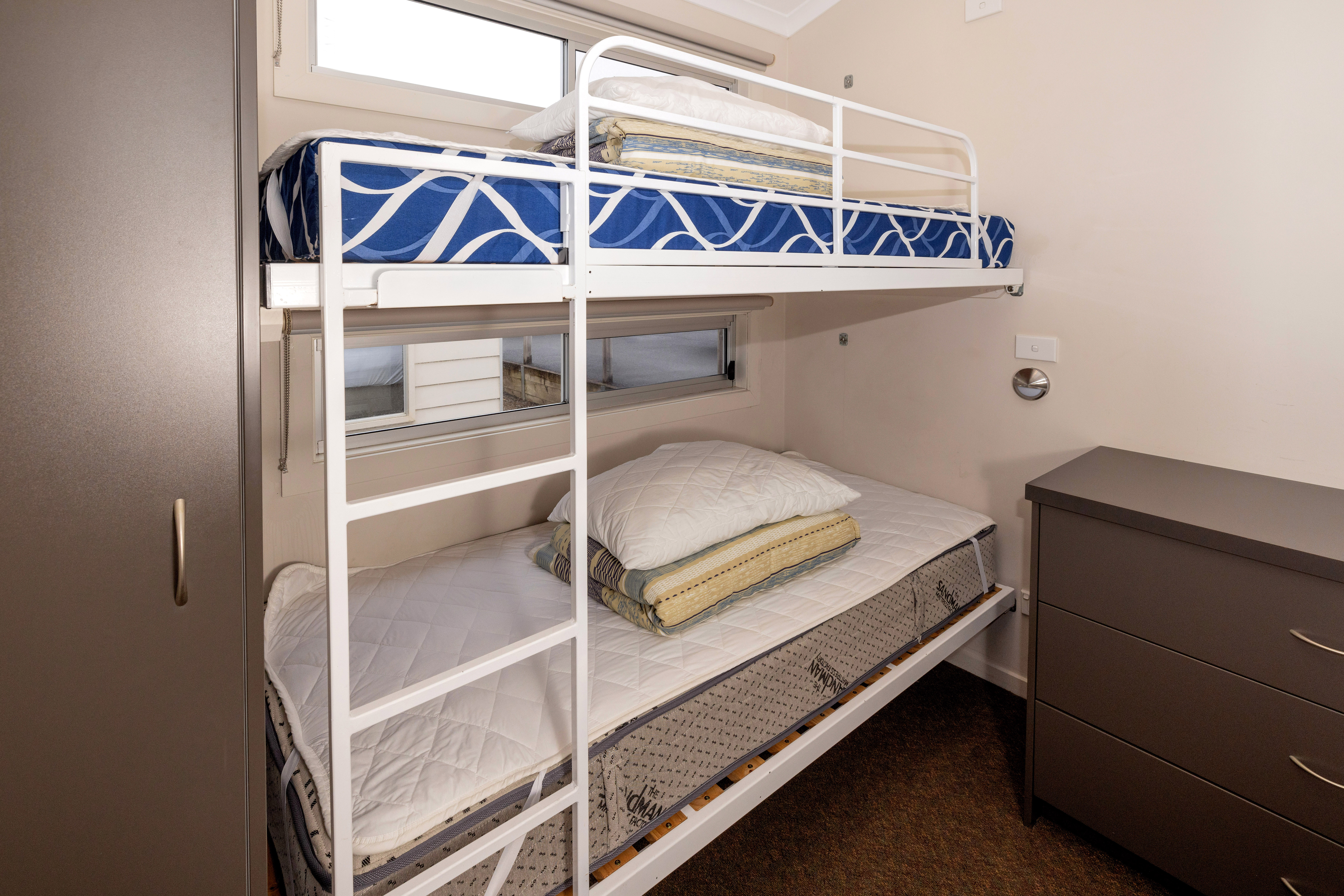 - Australian standards relate to the use of bunk beds and state that “Children under the age of 9 years are not permitted to sleep in the top bunk”, and “Children must not play on the top bunk”. Please take this into consideration when making a booking.