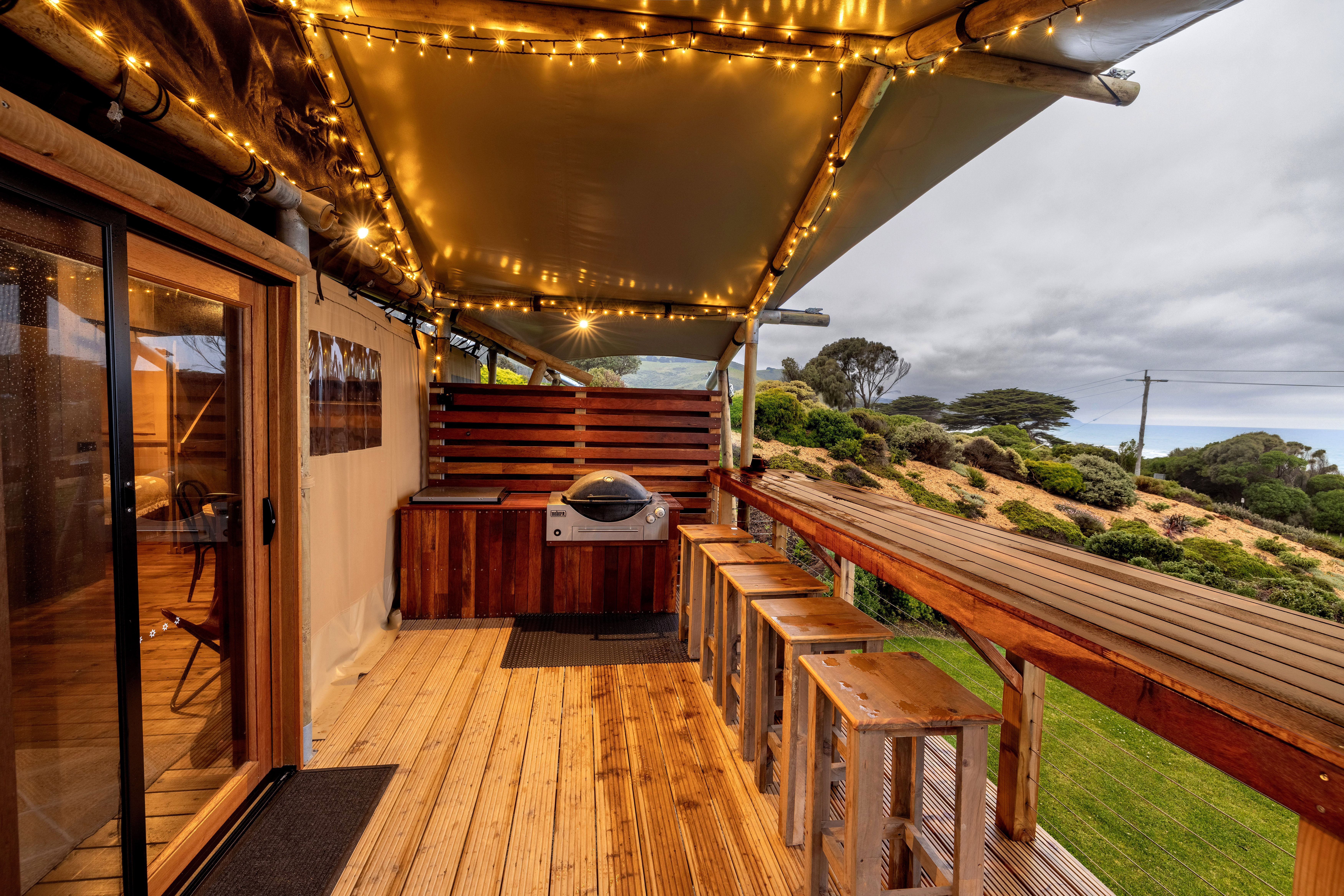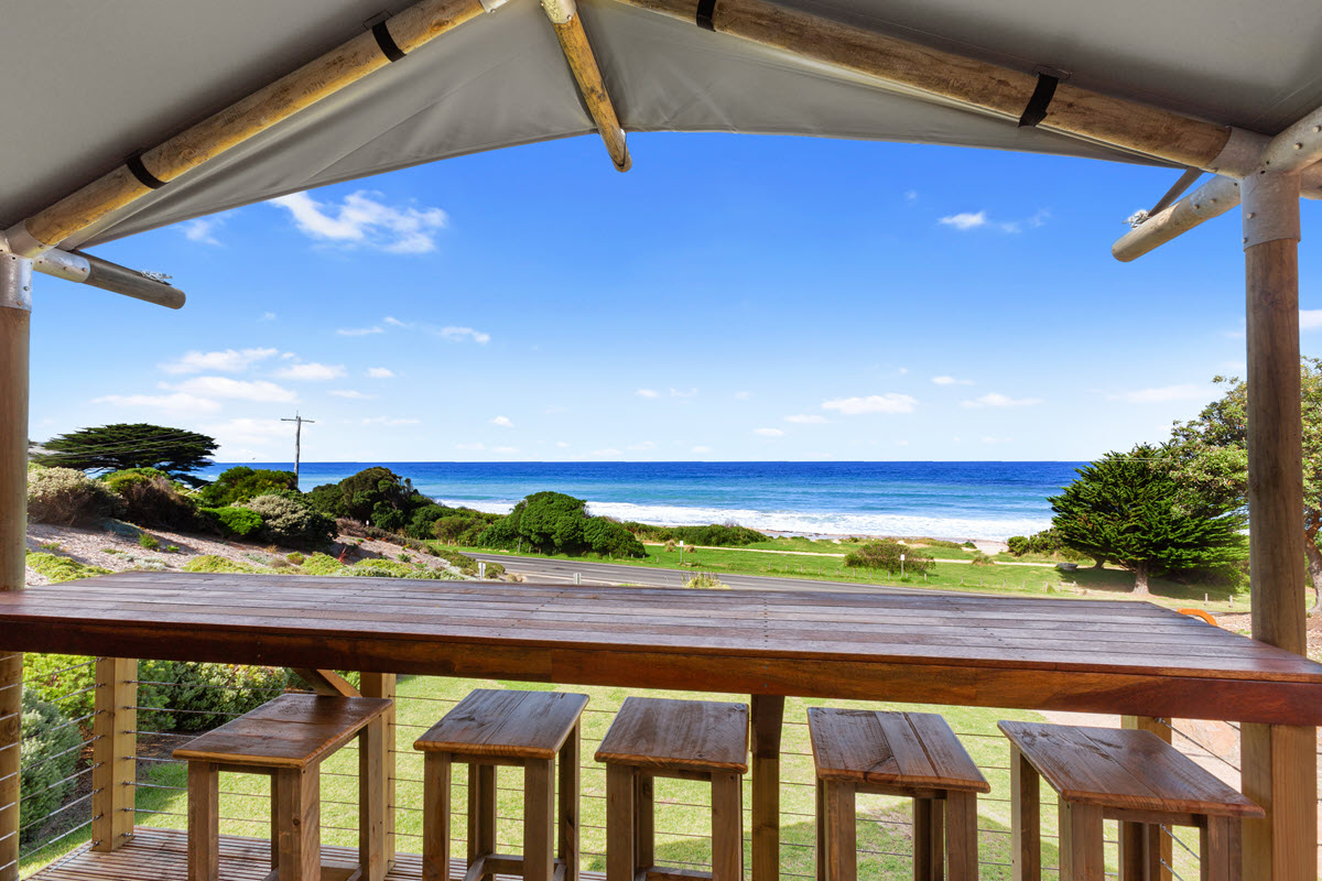 The Beach Tents at BIG4 Apollo Bay have a great view of the ocean and are ideal for glamping and holidaying in along the Great Ocean Road.