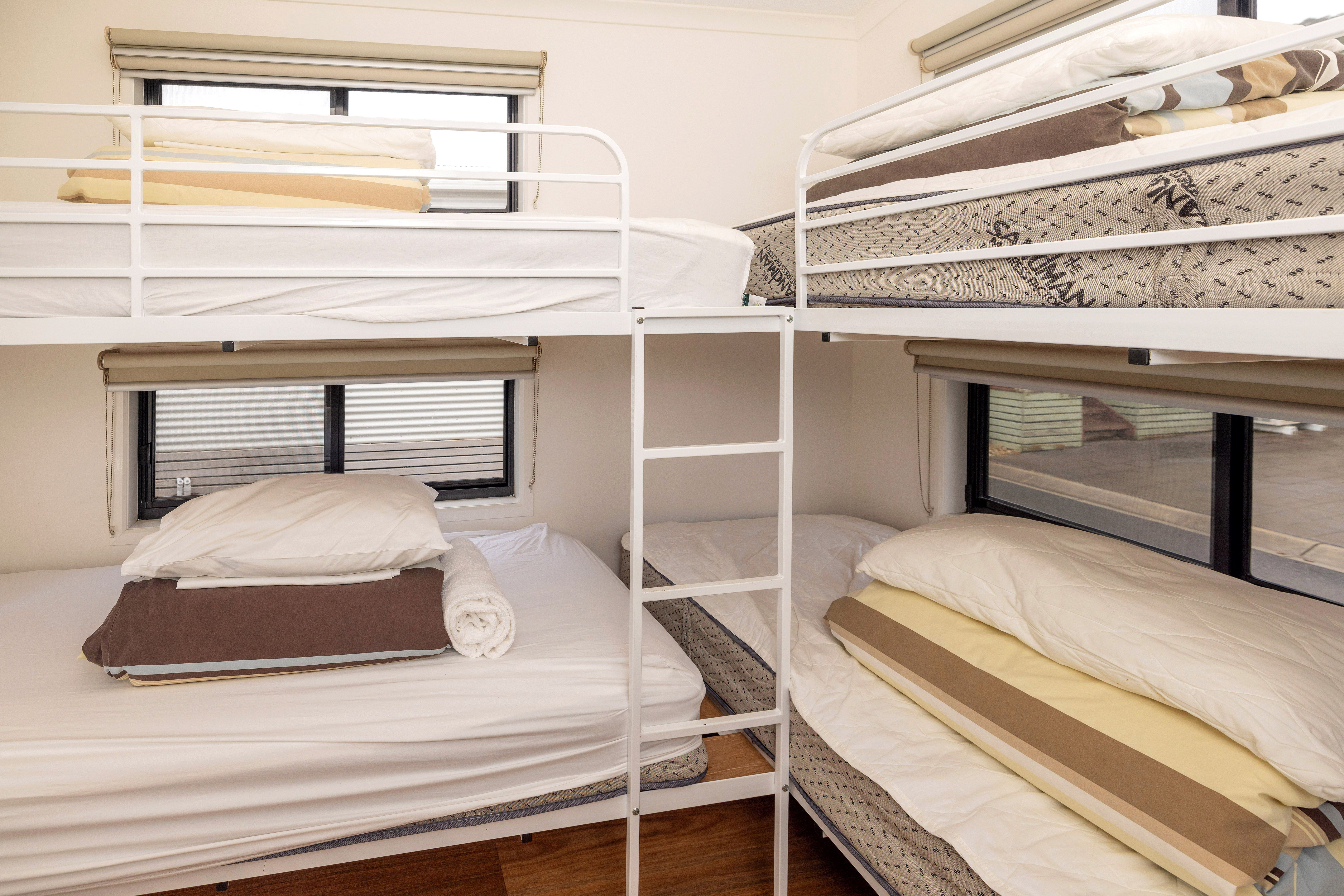 - Australian standards relate to the use of bunk beds and state that “Children under the age of 9 years are not permitted to sleep in the top bunk”, and “Children must not play on the top bunk”. Please take this into consideration when making a booking.