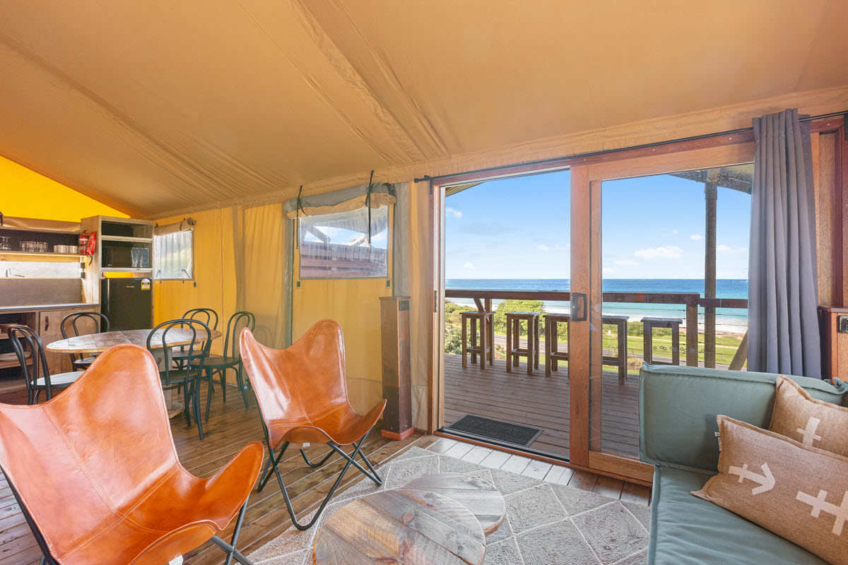 Upgrade your next Apollo Bay holiday with our Stay 5, Pay 4 special. Book a 5-night escape in our Glamping Beach Tents or Deluxe 6-Berth Cabins between 21 January and 30 June, 2026, and only pay for 4.