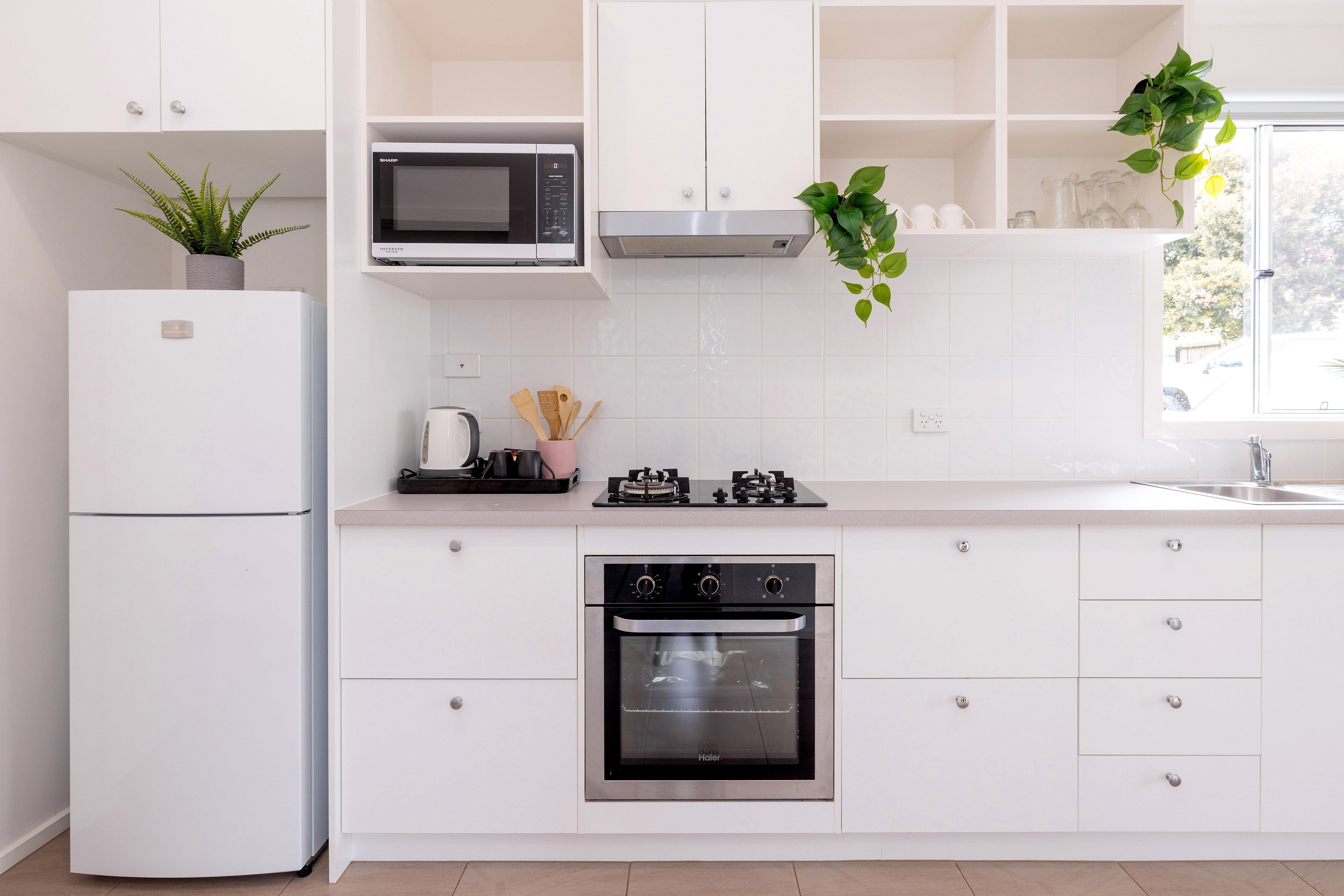 The two-bedroom units give an immediate impression of openness and relaxed comfort. Carefully intended to offer couples or the smaller family time together, these units offer indoor and outdoor dining alternatives, a fabulous galley style kitchen from which to survey proceedings and prepare delicious food. The main bedrooms have king beds, while just across the living room the second bedroom has two single beds with a purpose built portacot space.