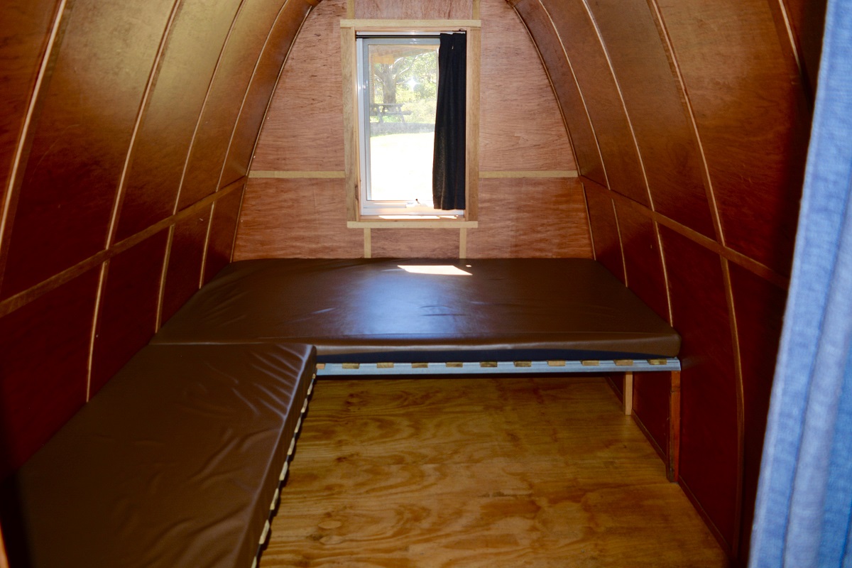 Ideal for someone that wants to camp rain hail or shine and doesn’t want to buy a tent and camp beds. Has 1 x double and a small single bed, others can sleep on the floor.