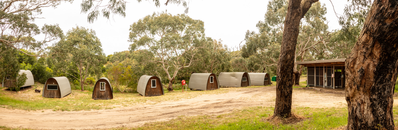 No kitchen, No lighting, No power, No ensuite. Toilets close to pods but camp kitchen and showers in the main part of the park.