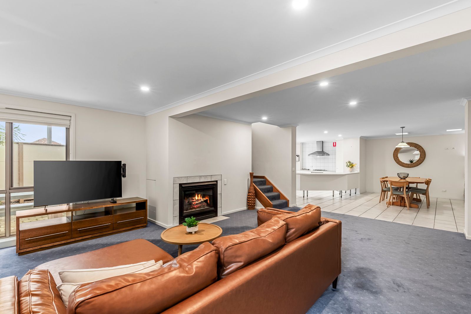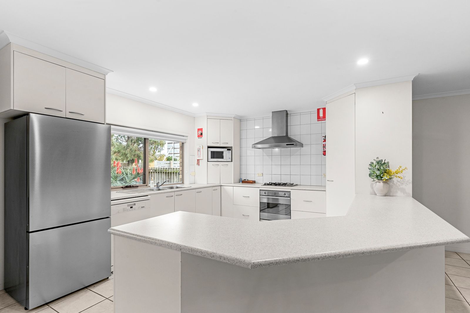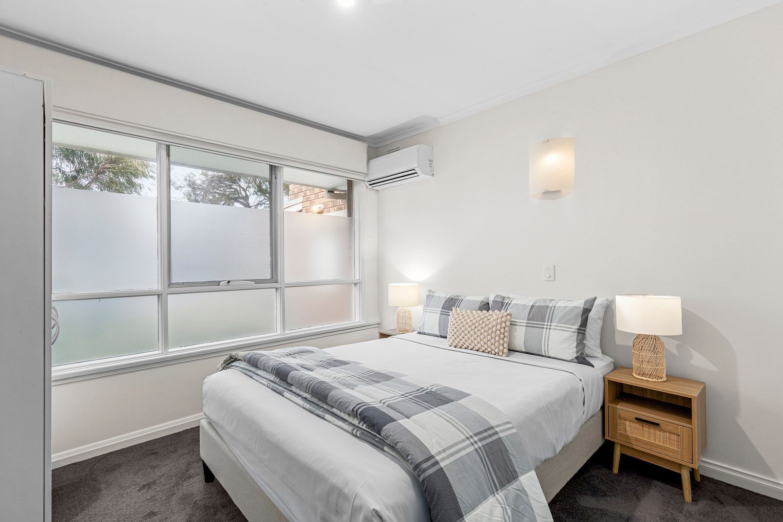 Perfect for families or groups, this two-storey retreat sleeps up to eight guests. Upstairs, you’ll find a queen bed in the main bedroom, two single beds in the second bedroom, and a full bathroom. Downstairs features two additional bedrooms, each with a queen bed, another bathroom, and a generous open-plan kitchen and living area. Enjoy the convenience of an enclosed garage and unwind in your private courtyard complete with outdoor seating, ideal for relaxed coastal living.