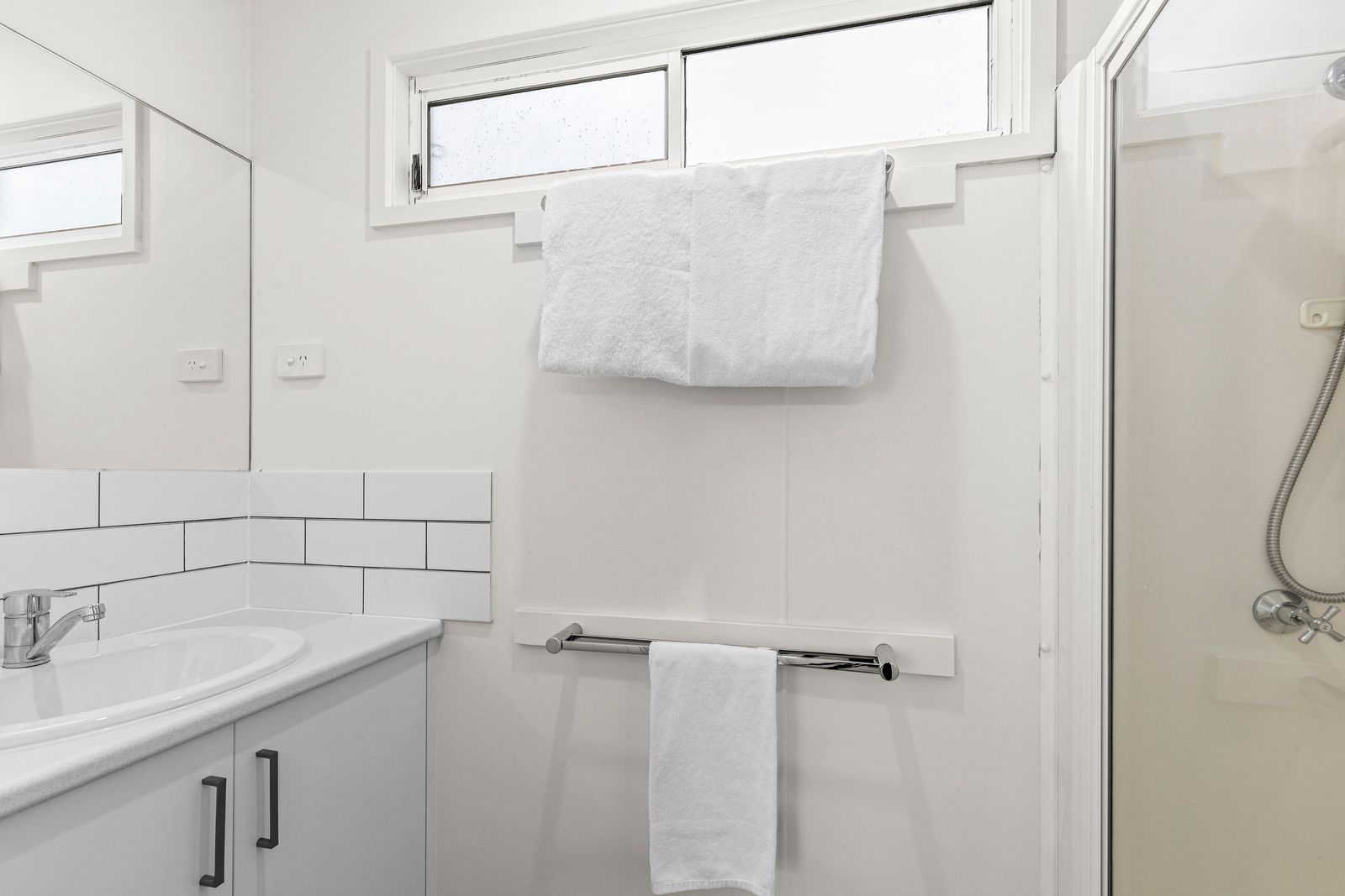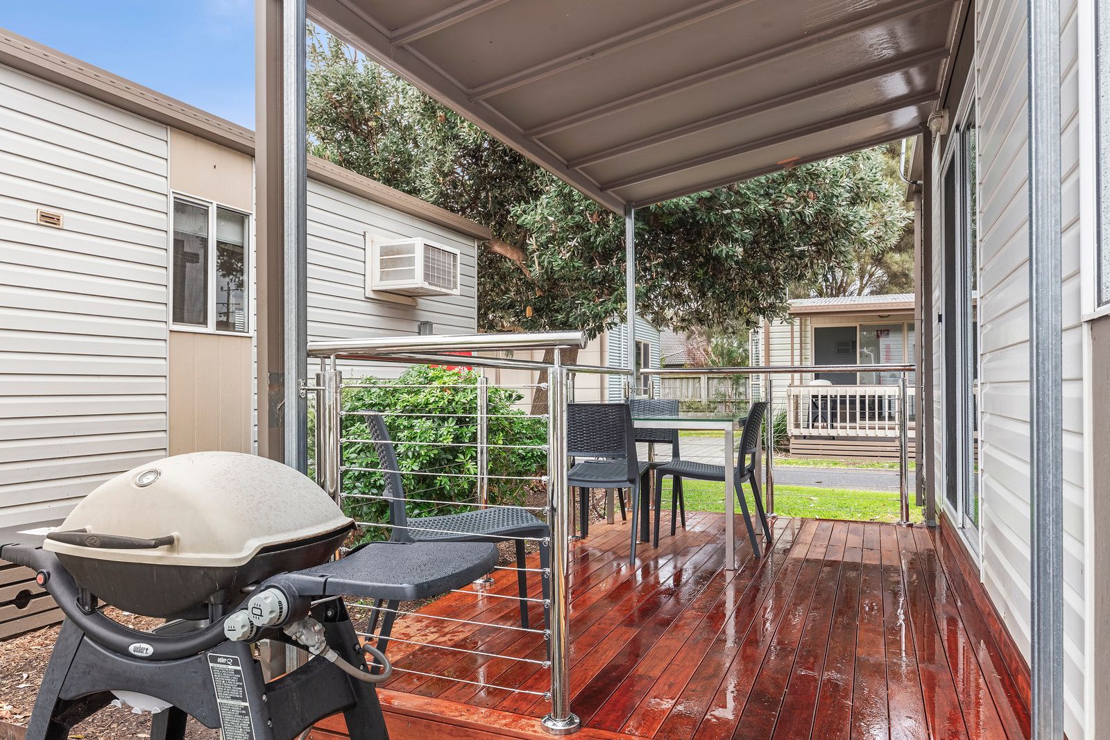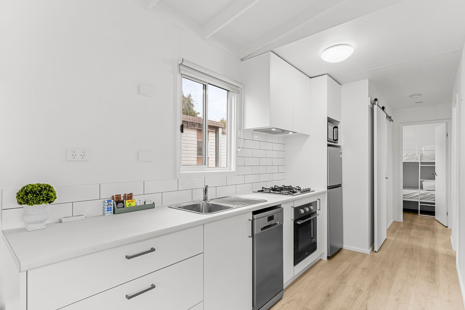 Enjoy extra space and comfort in our Queenscliff 3 Bedroom Cabins, designed to accommodate up to 6 or 8 guests. Each cabin features a queen bed in the main bedroom, with a mix of single bunks or a double bed with overhead bunk in the second and third rooms. You'll also find a private bathroom with separate toilet, a fully equipped kitchen, open-plan living area, and a private deck for relaxing outdoors. If you have a preferred room configuration, simply leave a note when booking and we’ll do our best to accommodate your request.