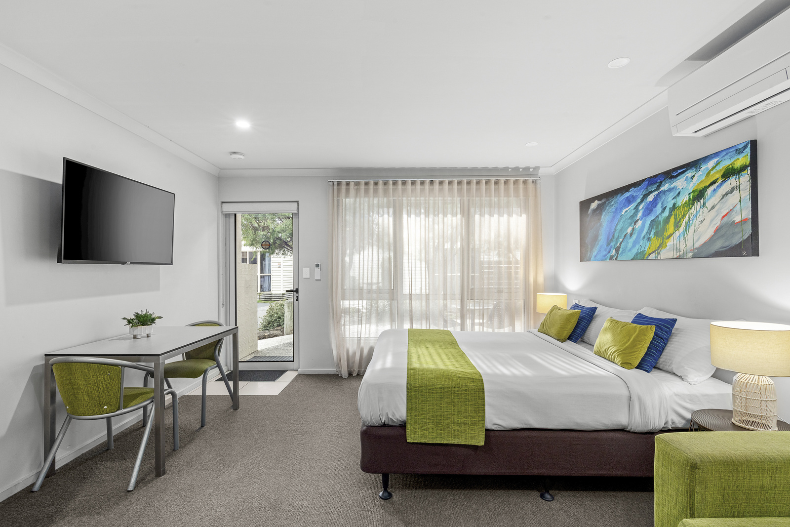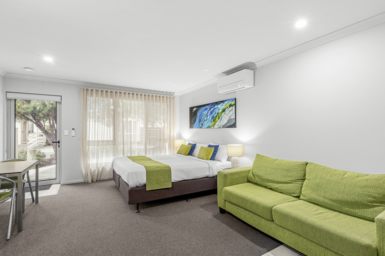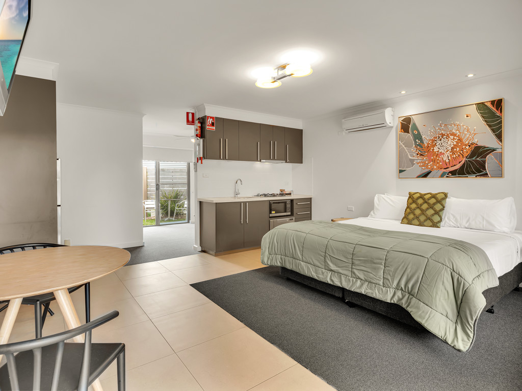 Our charming Studio Apartments offer a peaceful retreat for up to three guests, featuring a plush king bed in an open-plan layout, with space for a roll-away bed or cot upon request. Each apartment includes a private bathroom, a convenient kitchenette and a cosy outdoor setting overlooking beautifully maintained gardens. We also offer one Studio Apartment with an accessible bathroom. If you require this feature, please contact us in advance so we can accommodate your needs.