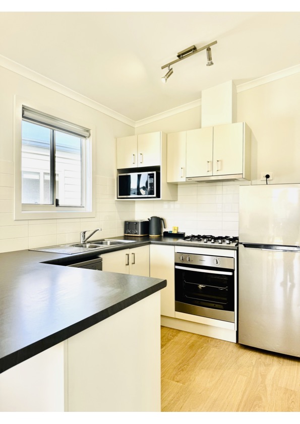 Our Puffin cabins are modern and spacious, designed with families in mind. Each includes two bedrooms - one with a queen bed and the other with two sets of bunks - plus full kitchen and bathroom facilities for comfort and convenience.