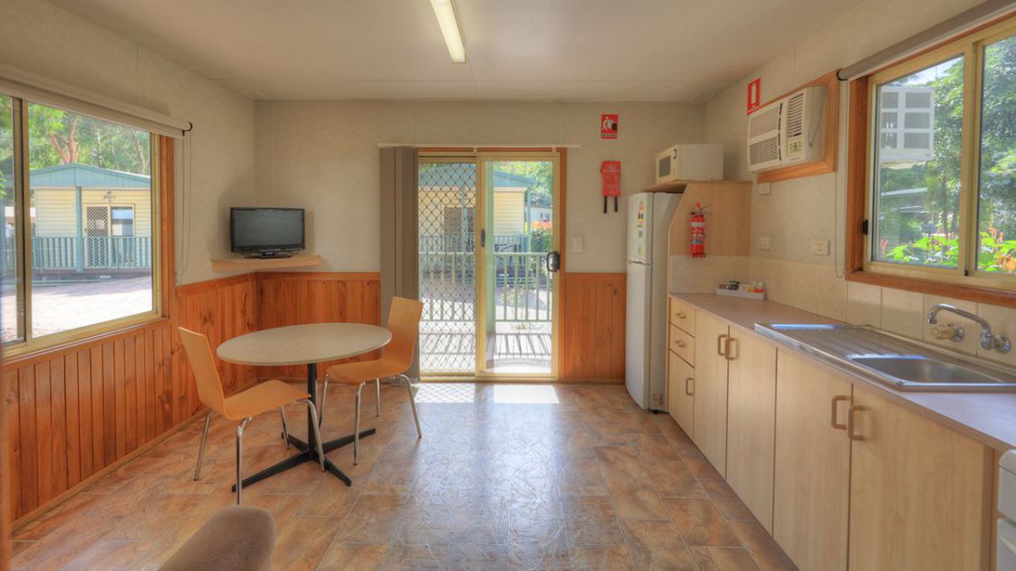 There’s a lounge for relaxing and a large flat screen television to keep you entertained. The reverse cycle air-conditioning is great for year-round comfort.