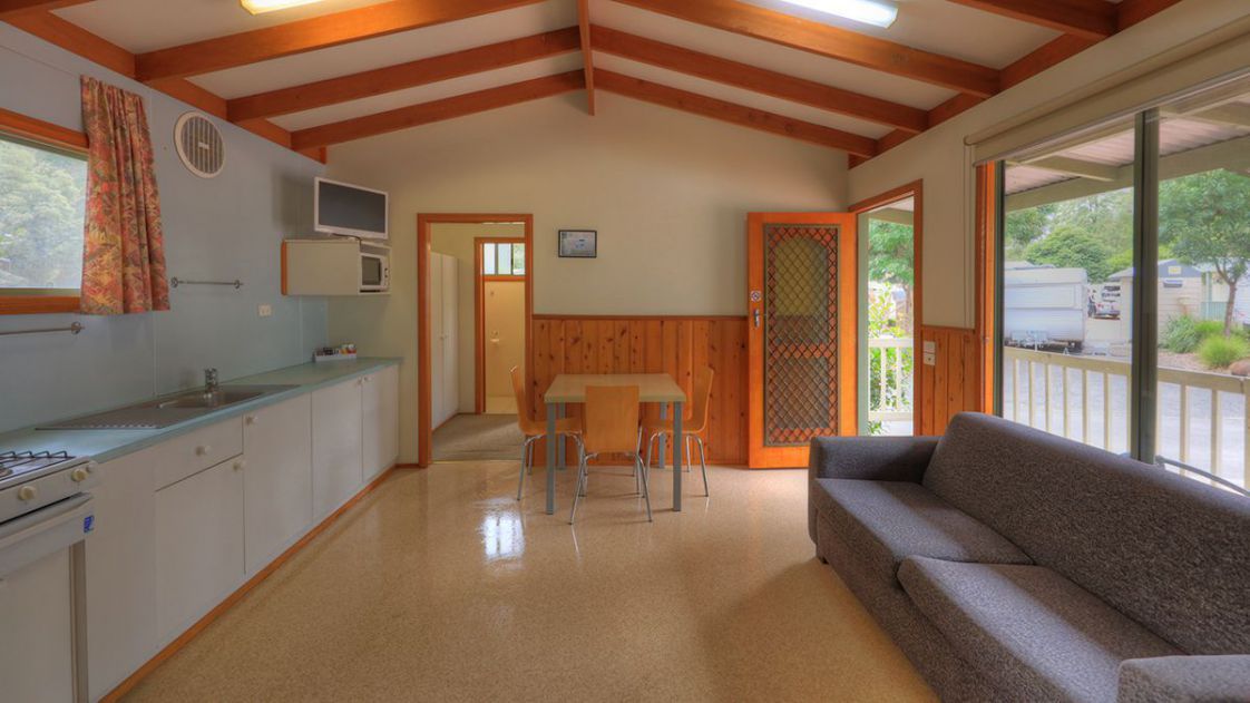 Our 2 Bedroom Villa, sleeps 4, with a queen bed located in the main bedroom and a double bed in the second bedroom. Each villa contains a kitchenette with a cooktop, fridge, microwave, pots, pans, crockery, cutlery and table and chairs. Also included for your convenience is a kettle and toaster. With complimentary tea, coffee, sugar, biscuits and milk, our 2 Bedroom Villas are a great budget option when staying in Melbourne.