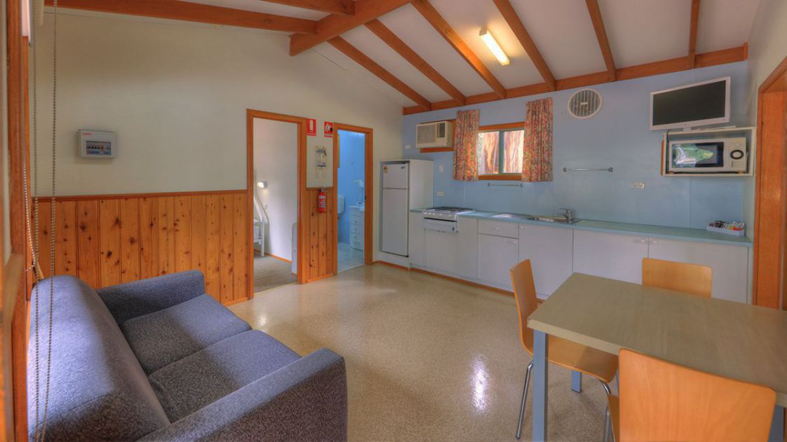 There’s a lounge for relaxing and a large flat screen television to keep you entertained. The reverse cycle air-conditioning is great for year-round comfort.