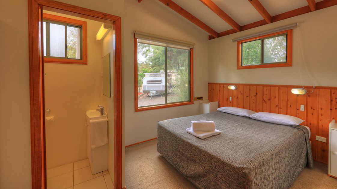 The cabin has a bathroom suite with a shower, mirror and a hair dryer with complimentary toiletries for your use. The cabin boasts an outdoor setting on the verandah and there’s parking beside or near the villa for your car and a trailer or boat.