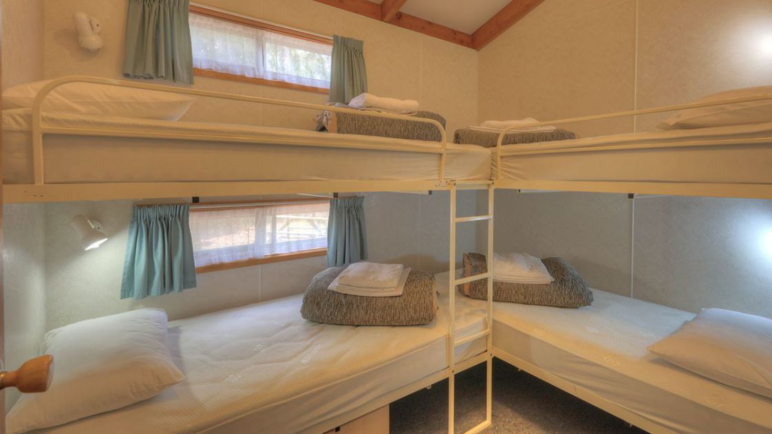 The soft and luxurious queen bed is fully made with a doona or blanket and linen. There’s an electric blanket on the bed and spare blankets in the cupboard to provide extra warmth during the chilly winter months. The bunk beds are supplied with sheets, a doona and pillow, however these are not made up.