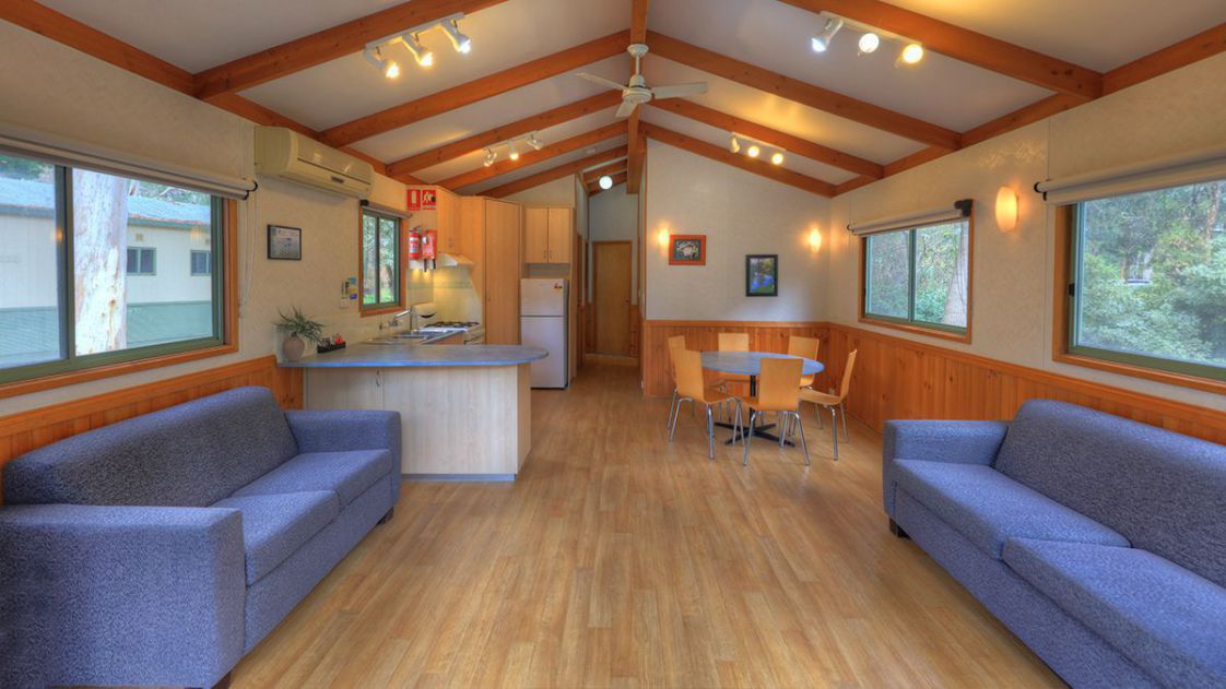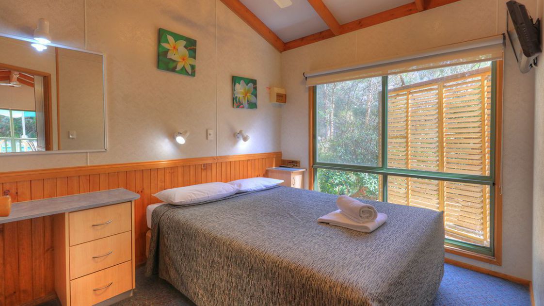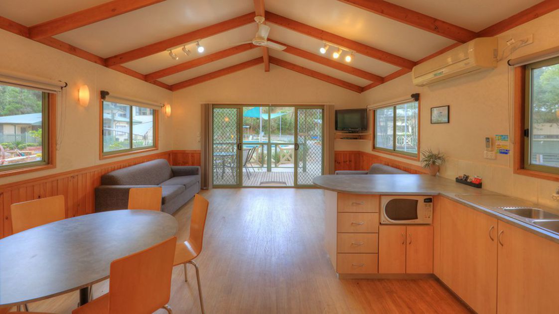 The villas have a bathroom suite with a vanity and mirror, a shower, a hair dryer with complimentary toiletries included. There’s a couch for relaxing, reverse cycle air-conditioning for year-round comfort and a flat screen television to keep you entertained. Each villa boasts an outdoor setting on the verandah and there’s parking beside or near the villa for your car and a trailer or boat.